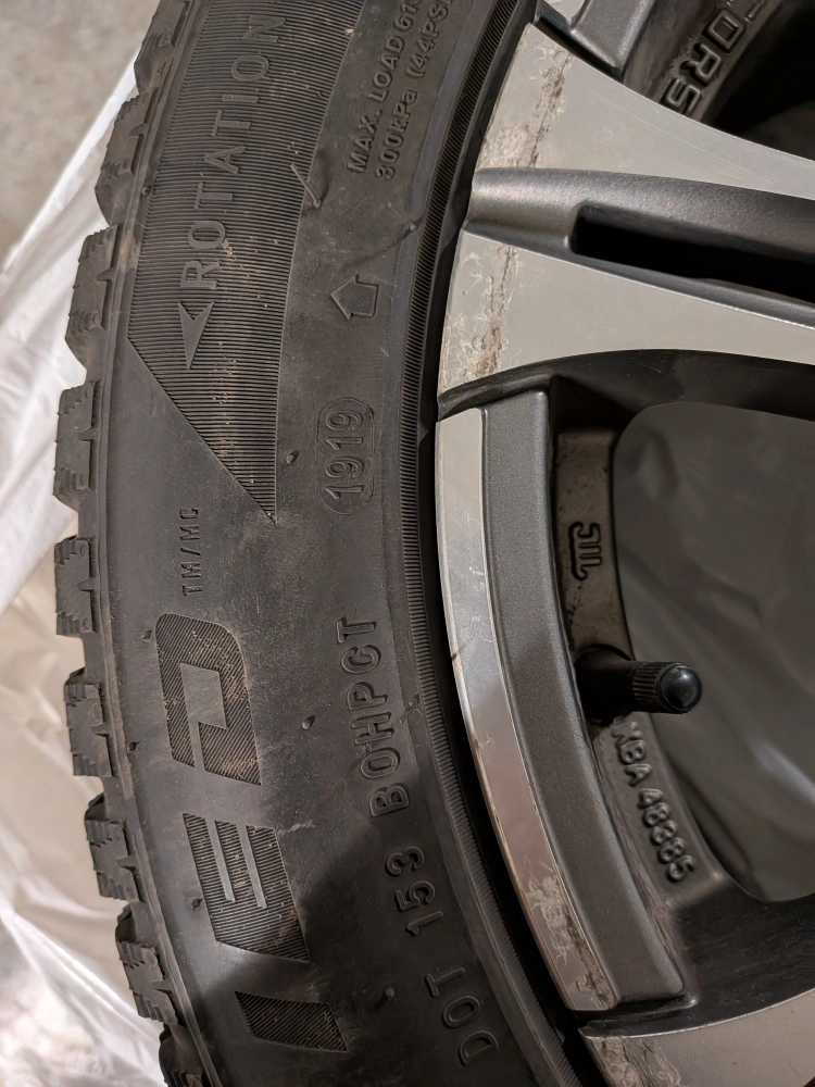 225/45/18 Michelin winter tires 95% tread alloy rims 5x112
