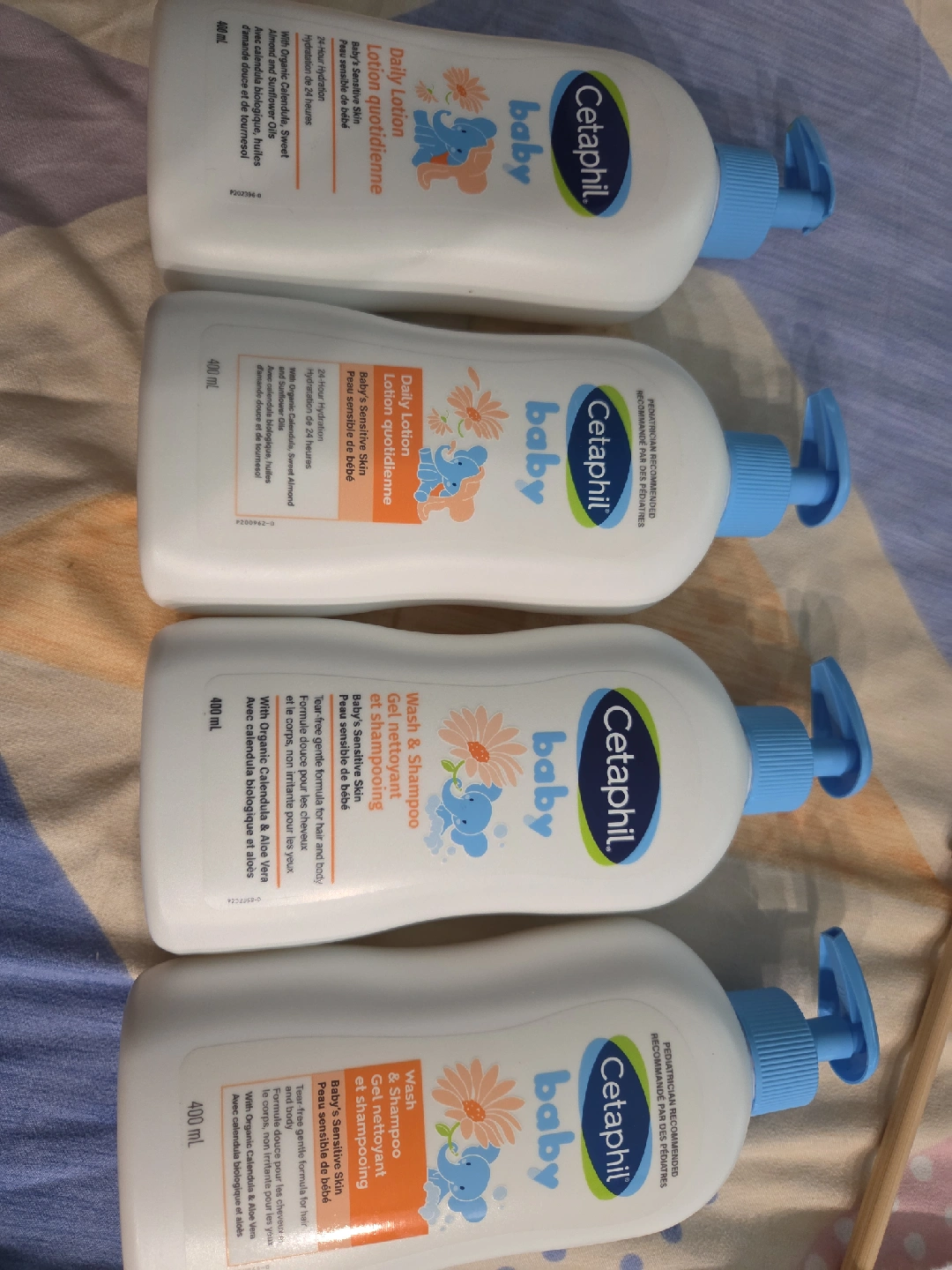 $12 each (for sealed bottles) $8 for the one with a slightly broken cap $38 for all 4 together (bundle offer) Set of 4 Cetaphil Baby products (400ml each) – 2 Daily Lotions and 2 Wash & Shampoo bottles. All are unused, but one bottle has a lightly opened/broken cap (still full and unused). Perfect for babies with sensitive skin — gentle, tear-free, and soothing with organic calendula. From a pet-free and smoke-free home.