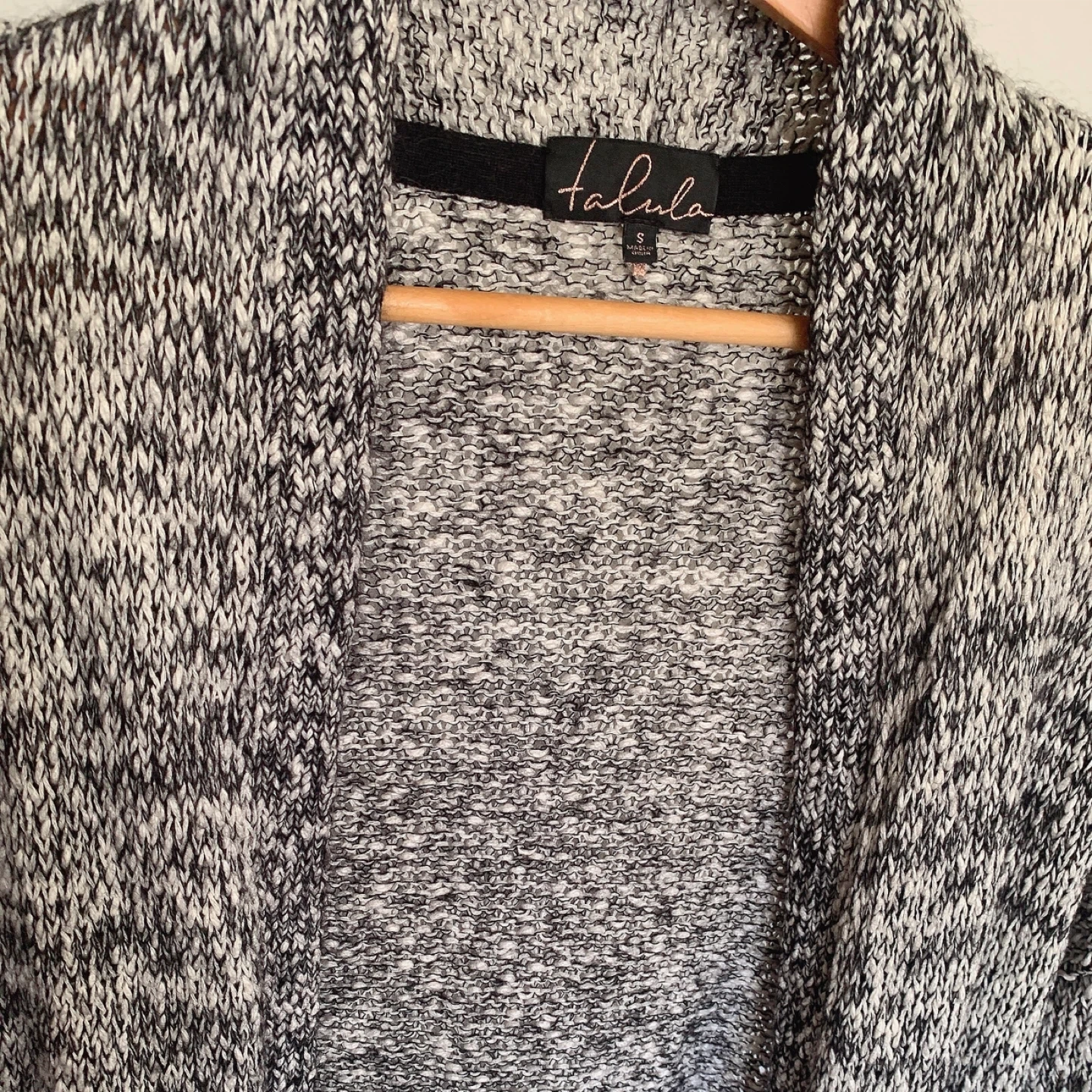 Talula open-front knit cardigan in a grey and white mixed knit.