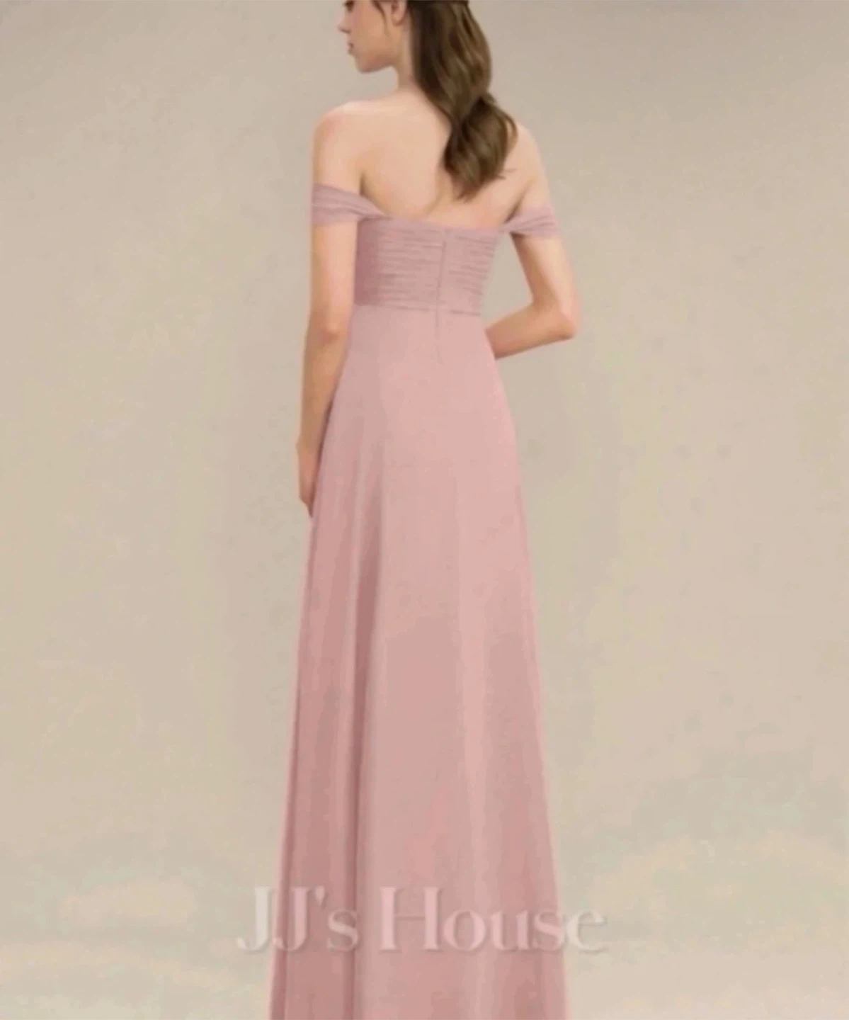 (us8)A-line Off Shoulder Floor-Length Chiffon Dress With Ruffle