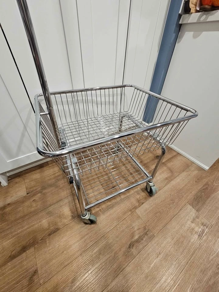 Sturdy chrome rolling basket cart in very good condition.