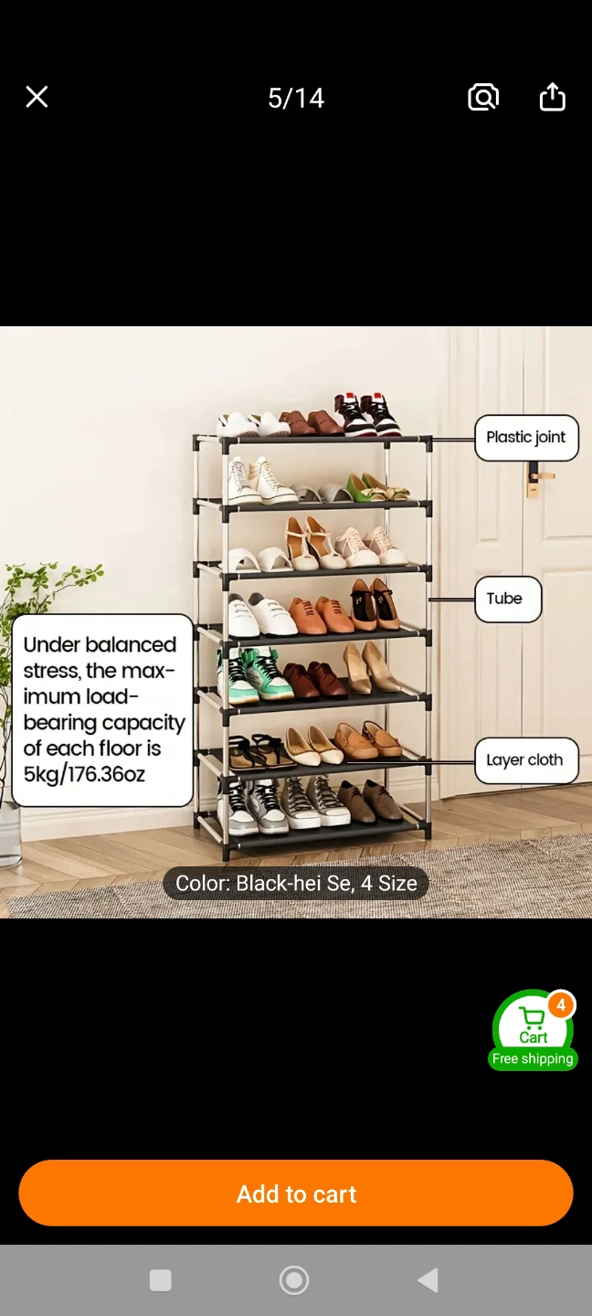 can hold 3 pairs of shoes per shelf. Maximum shelf load 4kg. Includes tubes.