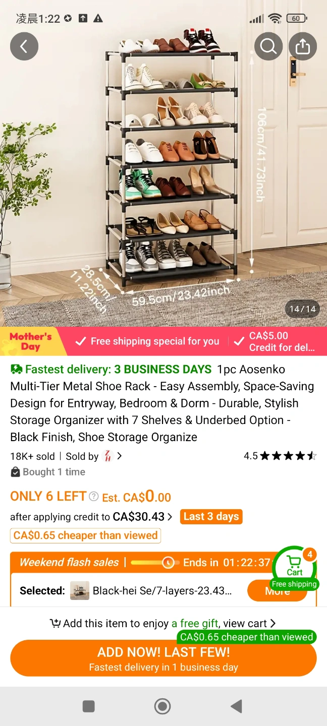 Brand New 7-Tier Rack - Black Metal Organizer with box
