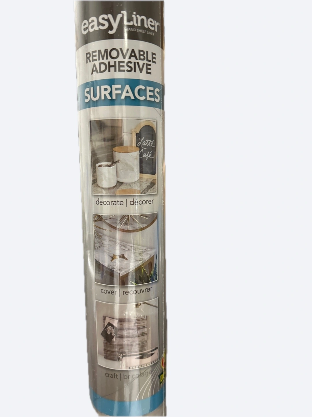 This is an easyLiner brand removable adhesive shelf liner. It's in a marble pattern and is 20 inches wide by 20 feet long. It's great for decorating, covering surfaces, and crafts. It's removable!