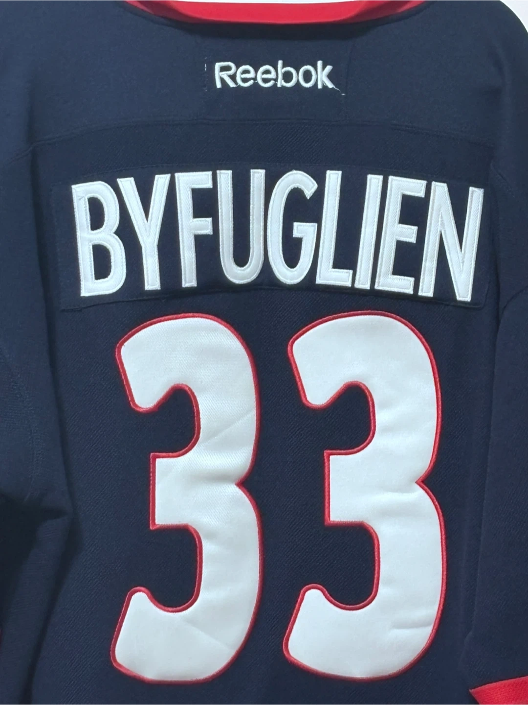 Authentic Reebok Center Ice collection hockey jersey for the Winnipeg Jets. Features player number 33 and name Byfuglien. Size 52 (men’s large ) and made in Canada.