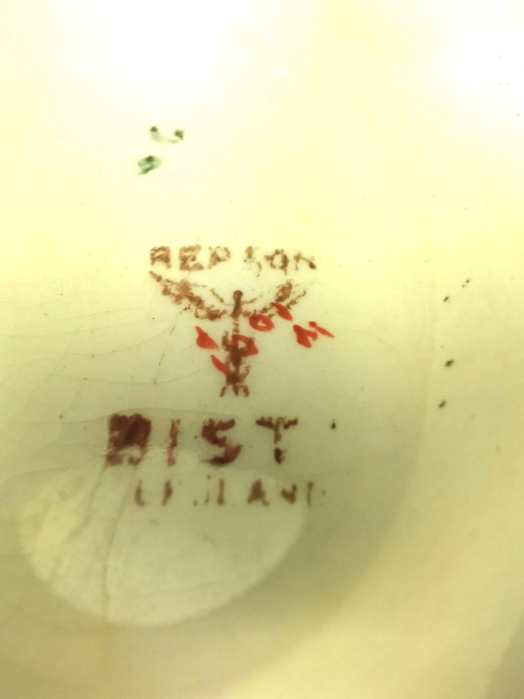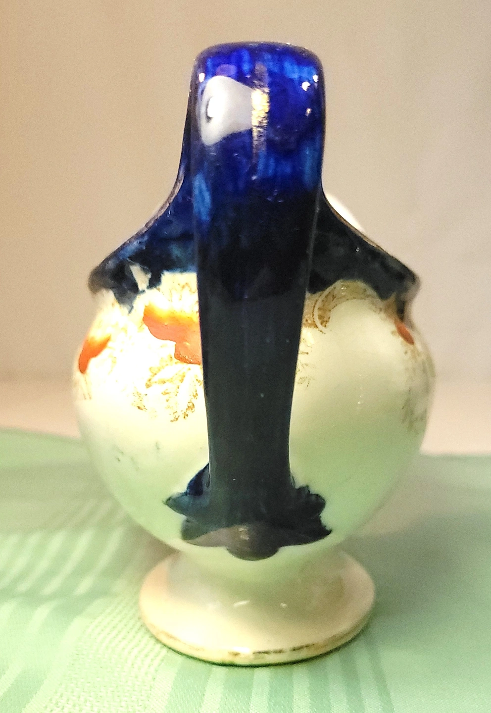Good Antique condition light wear. As is common with authentic ironstone of this age, there is some fine age-related crazing throughout the glaze and minor shelf wear on the unglazed bottom foot. The transfer remains vibrant, and the hand-painted orange details are well-preserved. Please review all high-resolution photos for a detailed view of the surface.