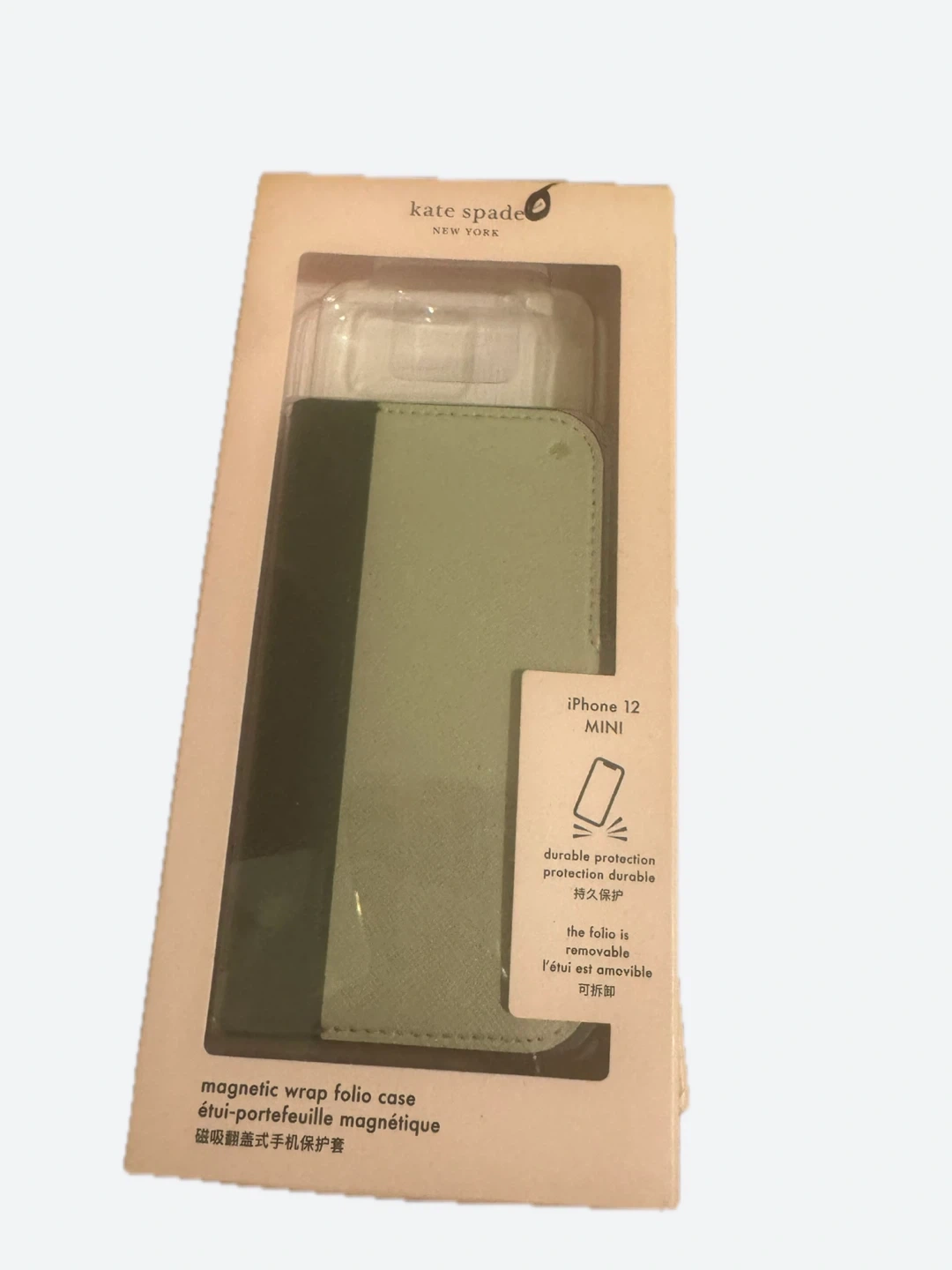 Two Kate Spade magnetic wrap folio cases are available, one for iPhone 11 Pro and another for iPhone 12 Mini. The folio is removable for durable protection. Get one for your phone!