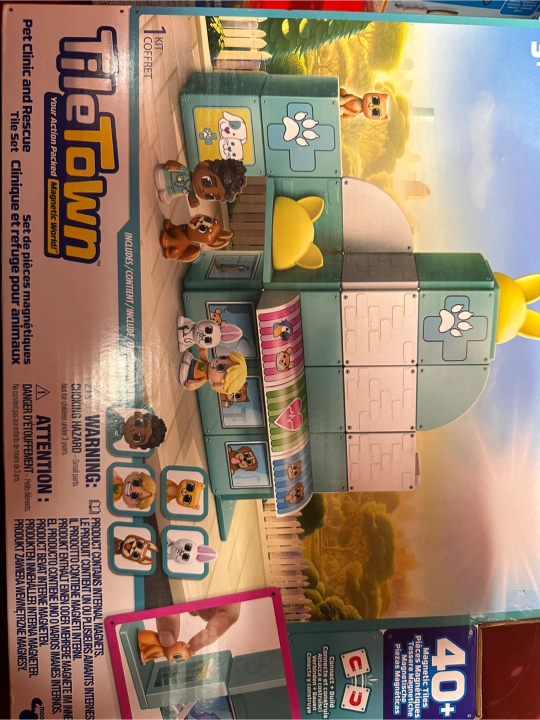 TileTown Pet Clinic and Rescue magnetic tile set! It includes over 40 magnetic tiles for building fun. Connect and build your own pet clinic and refuge.