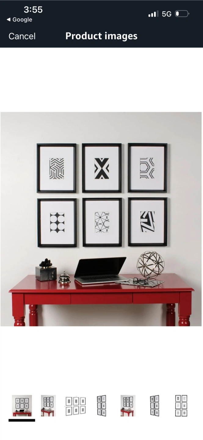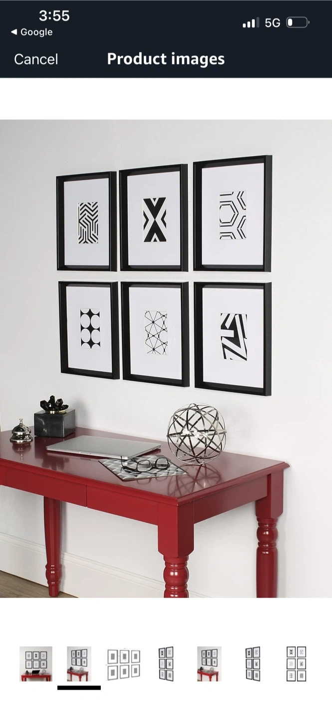 New Set of 6 Black Picture Frames with Abstract Art