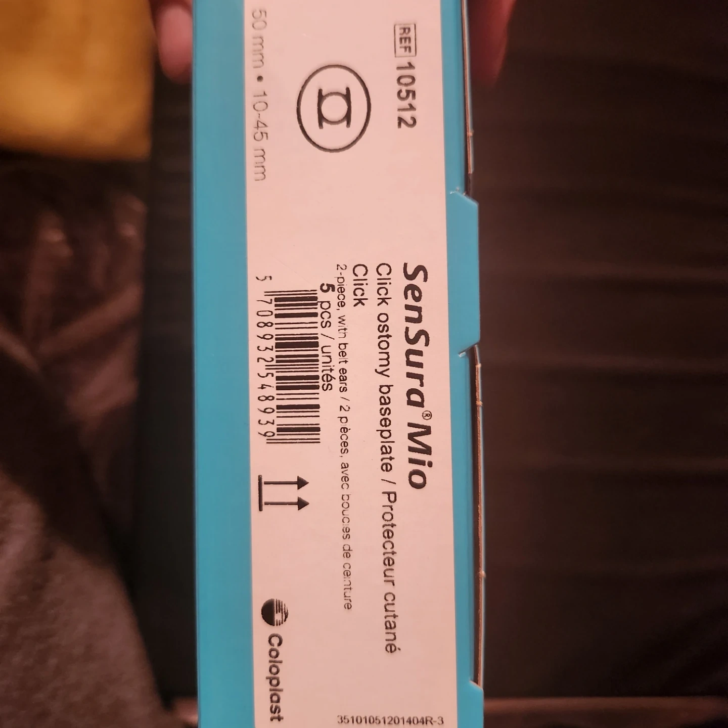This is a 5-piece Coloplast SenSura Mio Click ostomy baseplate. It's designed for a secure fit and includes detailed sizing guides. The package contains 5 units.