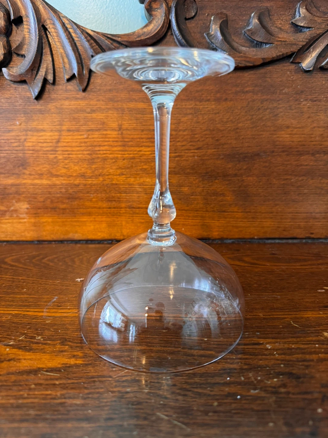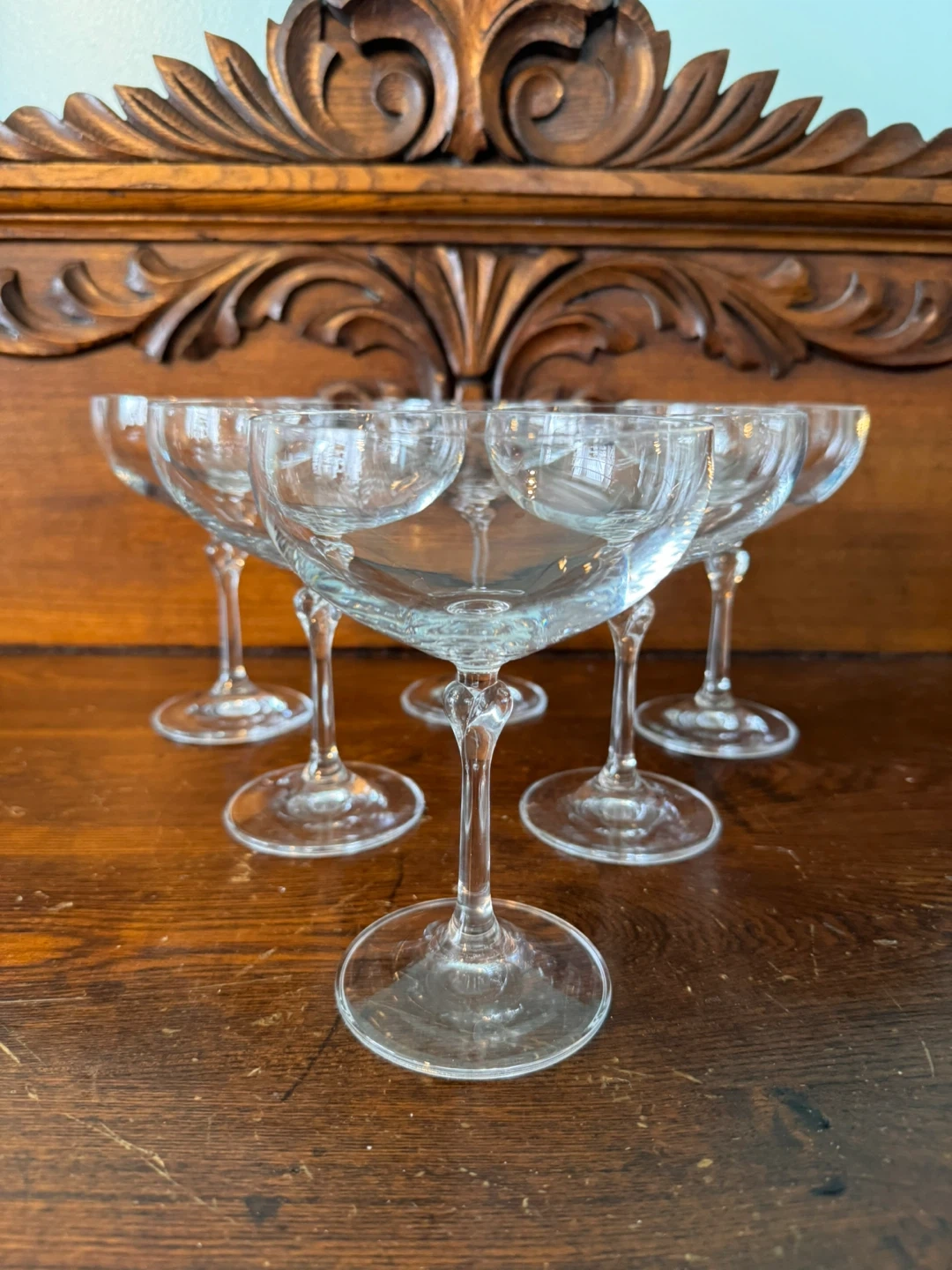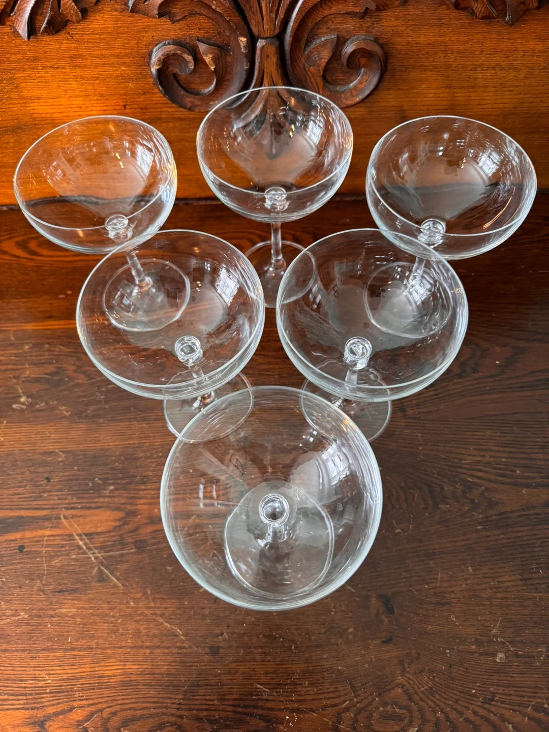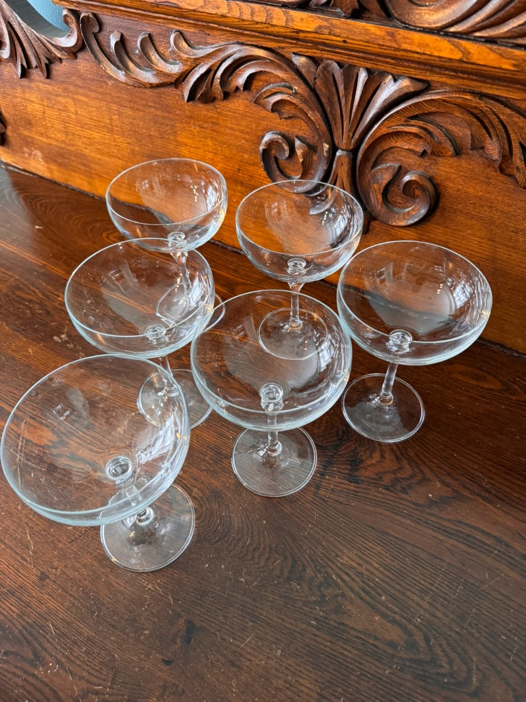 This is a set of 6 clear glass coupe cocktail glasses. They're perfect for serving champagne, martinis, or other classic cocktails.