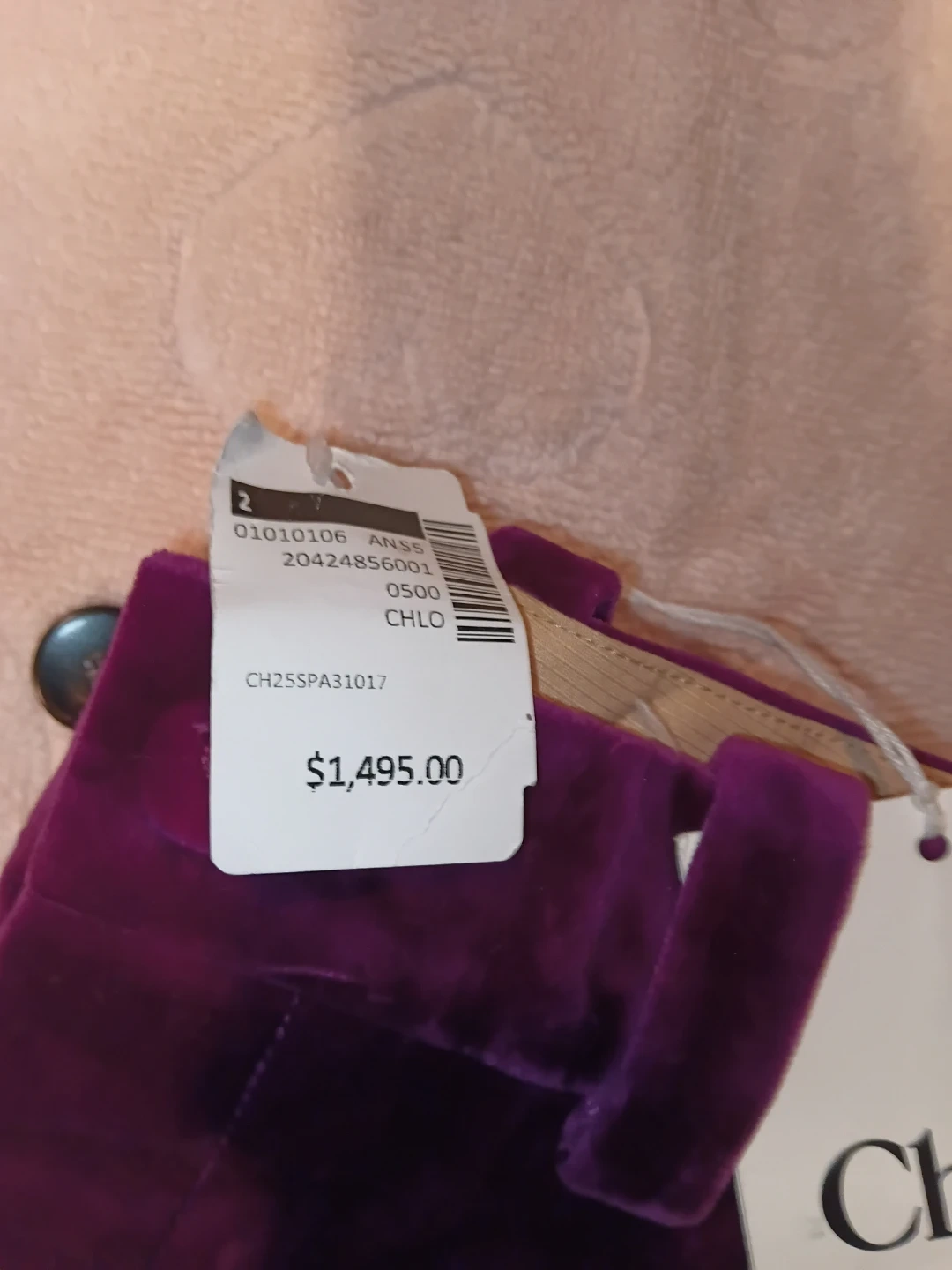 Brand new Chloé velvet trousers in a rich plum colour. Features a zipper closure and gold hardware details. It's a size 2.