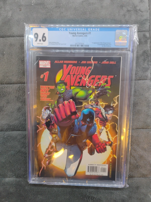 104Selling a graded copy of Young Avengers #1 from Marvel Comics. It's been professionally graded by CGC and received a grade of 9.6. This comic is from April 2005 and features art by Allan Heinberg, Jim Cheung, and John Dell. A great addition to any collection!