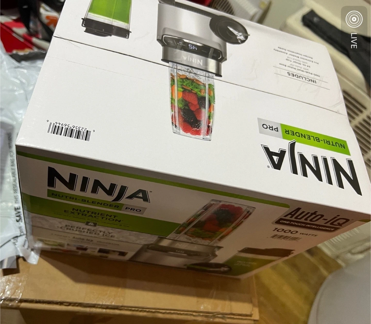 This is a Ninja Nutri-Blender Pro, model BN401. It's silver and includes two 24-oz. single-serve cups with lids. Auto-IQ technology provides intelligent blending programs. Comes with original packaging and instructions. Was $109.99 originally
