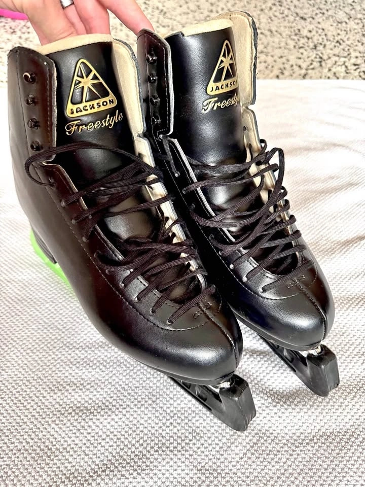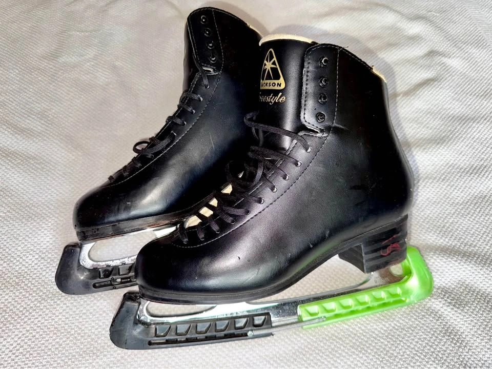 Like new condition. Only worn a few times. Genuine leather high quality figure skates. With professional guards on blades. Size 9.5 wide MENS. See my other posts for more ice skates. Located near Danforth & Greenwood or Queen East & Carlaw.