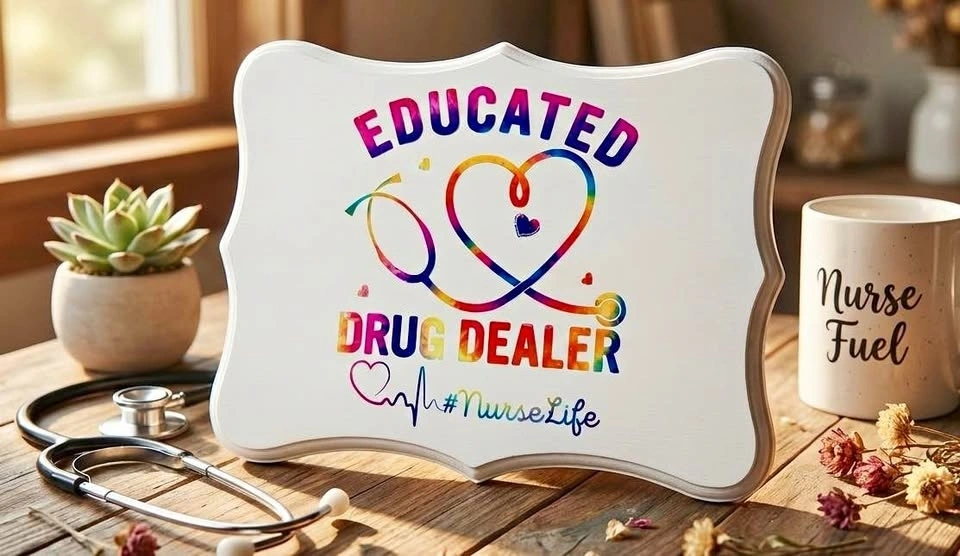Combining a touch of humor with professional pride, this piece is the perfect conversation starter for any nursing station, office, or home workspace.