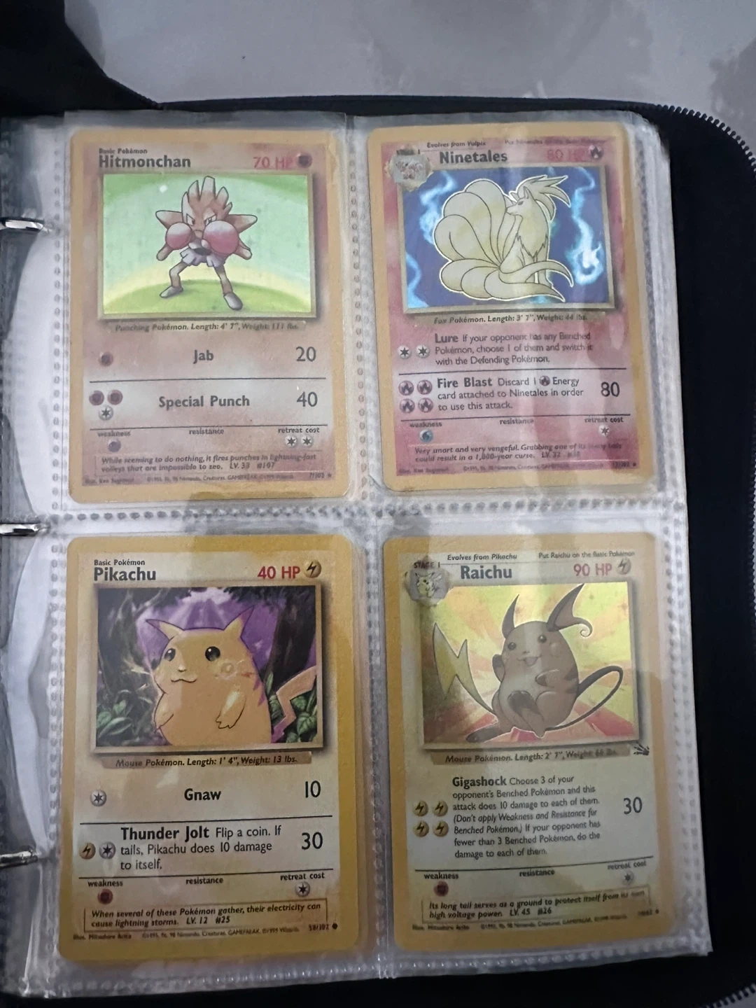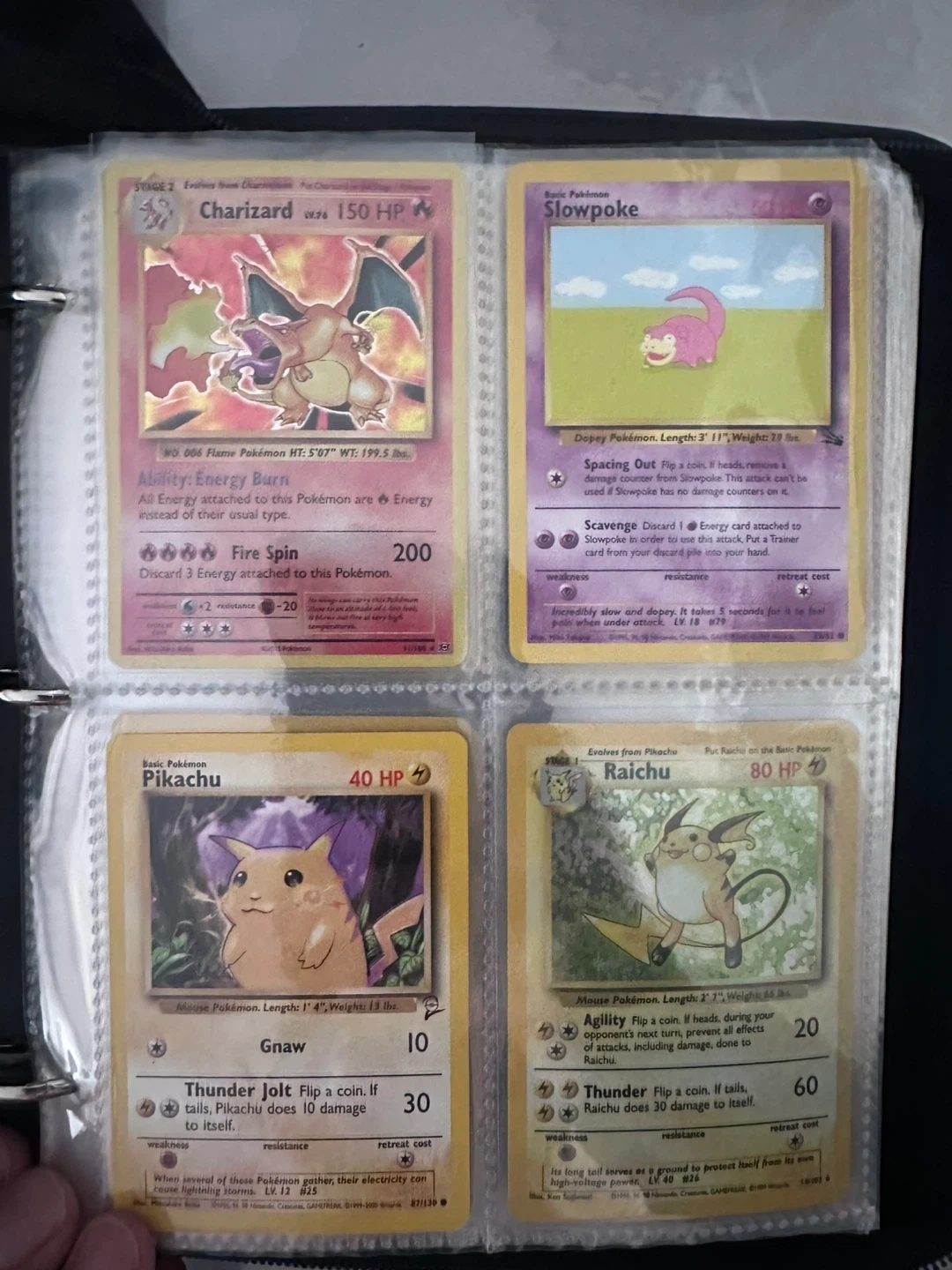 A binder full of various Pokemon trading cards. Includes Pokémon like Charizard, Pikachu, Raichu, and others. Cards are in a protective binder. Theirs many more card then shown on the pics but can upload due to picture limits