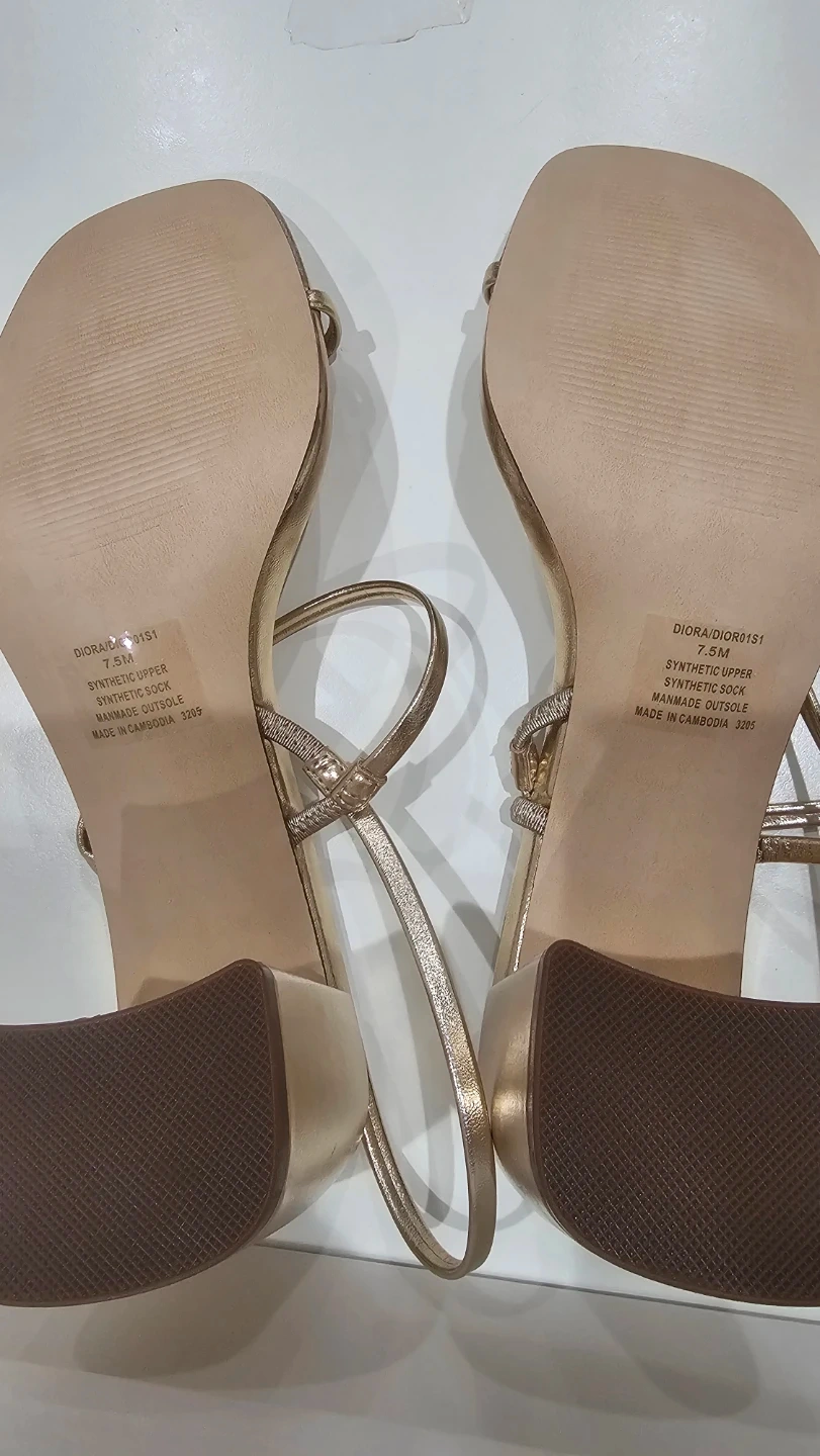 These Steve Madden Diora sandals feature a rose gold synthetic upper and manmade outsole. They're a size 7.5M. Perfect for dressing up any outfit!