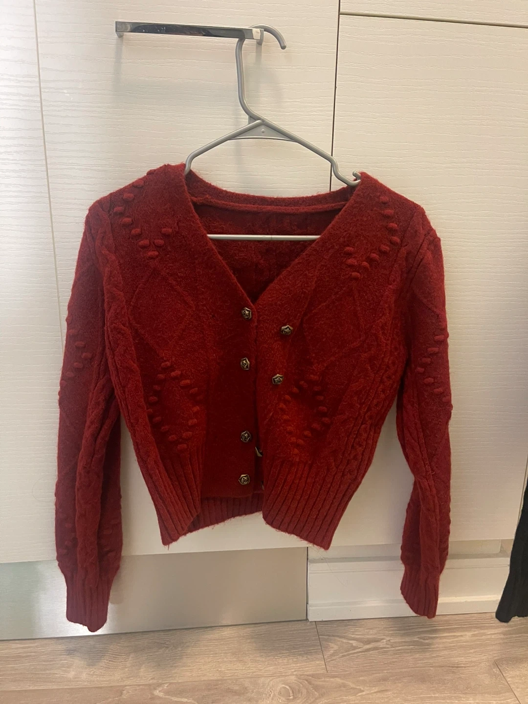 Selling two cardigans, one in black and one in red. They're both in great condition and feature a button-down style. Perfect for layering or wearing on their own!