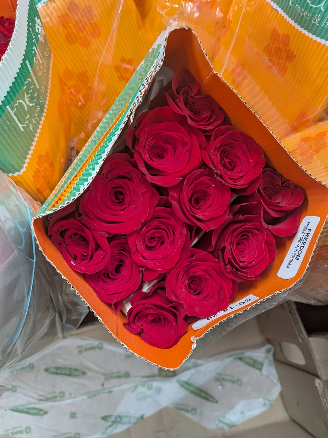 Fresh red roses ready for your special occasions. These vibrant blooms are carefully selected and arranged. Perfect for gifts or to brighten any space!