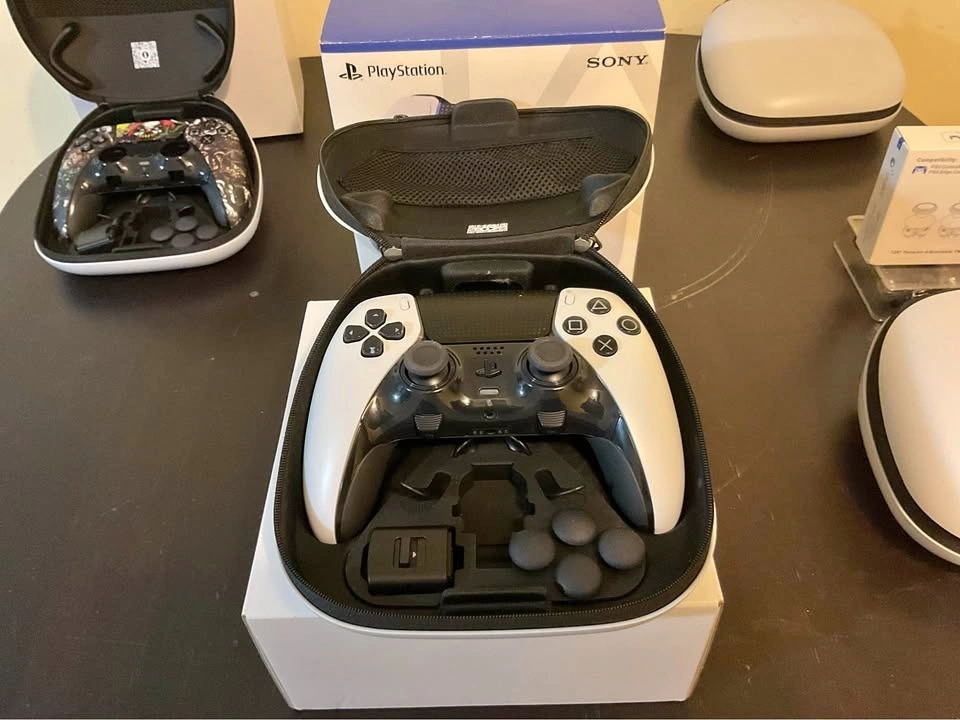 Brand new, open box Sony DualSense Edge wireless controller for PlayStation 5, PC, Mac, and mobile devices. In excellent condition with no sticky buttons or discolored rear grips. Includes the controller, carrying case, box, and all original accessories. You can test the controller before you buy. Experience personalized control with remappable buttons, swappable stick caps, adjustable stick sensitivity, and customizable trigger depth. The swappable back buttons can be configured for quick access to game-changing actions. The carrying case allows for charging and organized storage of components, and it comes with a USB-C braided cable and connector housing. Features adaptive triggers and haptic feedback for immersive gameplay (when supported by game). Includes: Dualsense Edge Wireless Controller – Midnight Black, 2 Standard Caps (Attached), 2 High Dome Caps, 2 Low Dome Caps, 2 Half Dome Back Buttons, 2 Lever Back Buttons, Connector Housing, Carrying Case, Instruction Manual. Feel free to message if you have any questions!