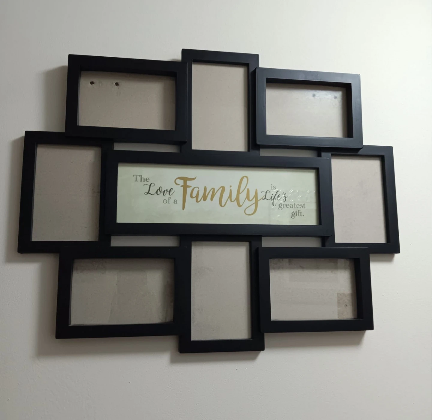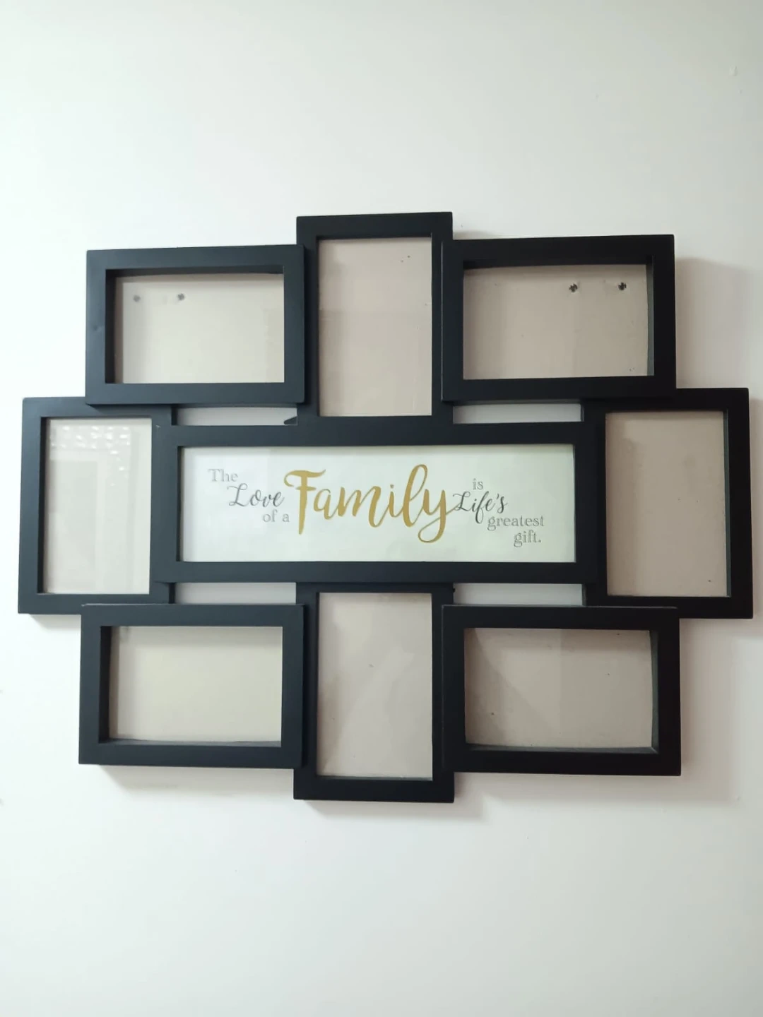 One black frame includes a removable decorative quote insert that can be replaced with your own photos.
