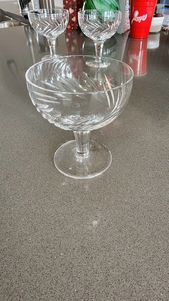 Beautiful vintage crystal champagne & sorbet glasses with fern detail. Normally sells for $45+ a piece, but I'm selling all 3 glasses for $45. Pick up near Elgin Mills and Leslie.