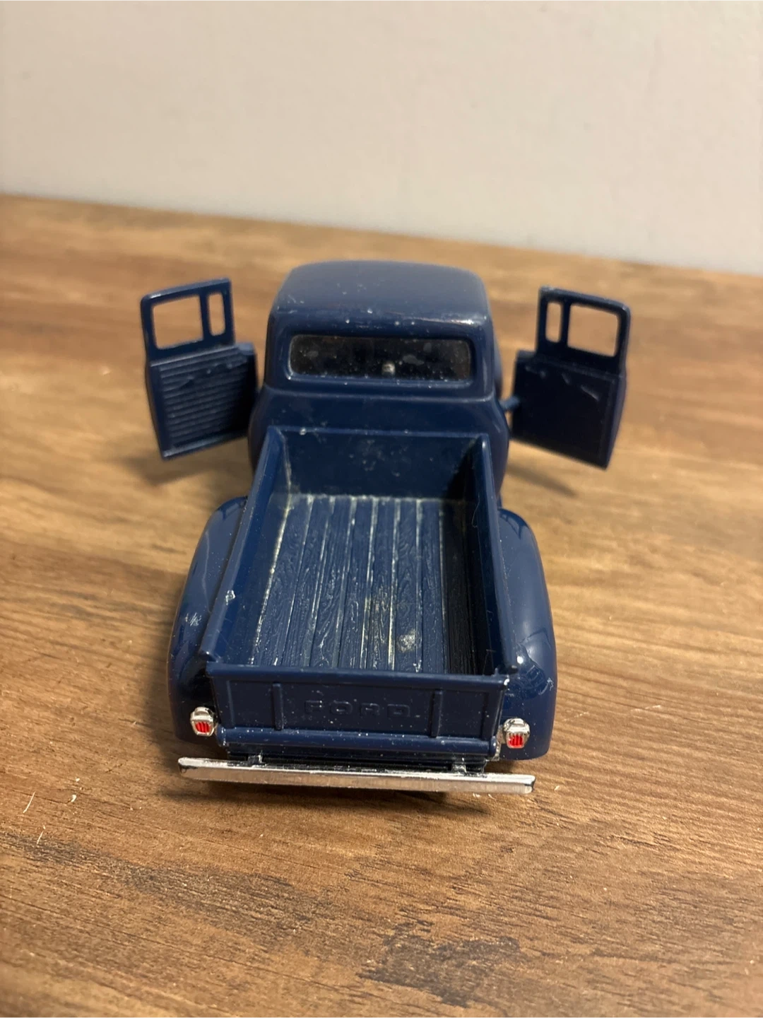 Selling a diecast model of a Ford F-100 pickup truck. It's a nice blue colour and appears to be in good condition. The doors and hood open, showing the engine and interior details