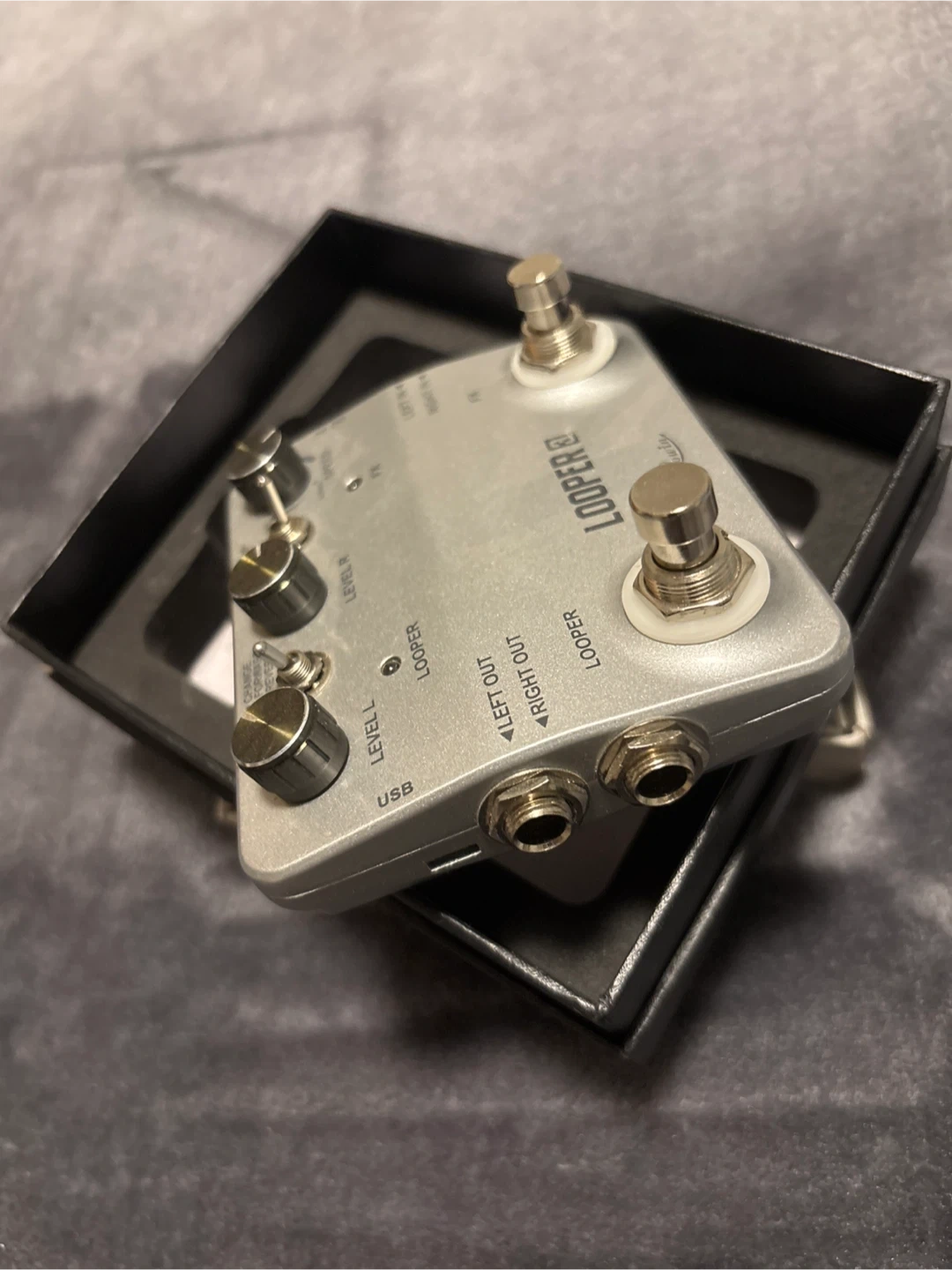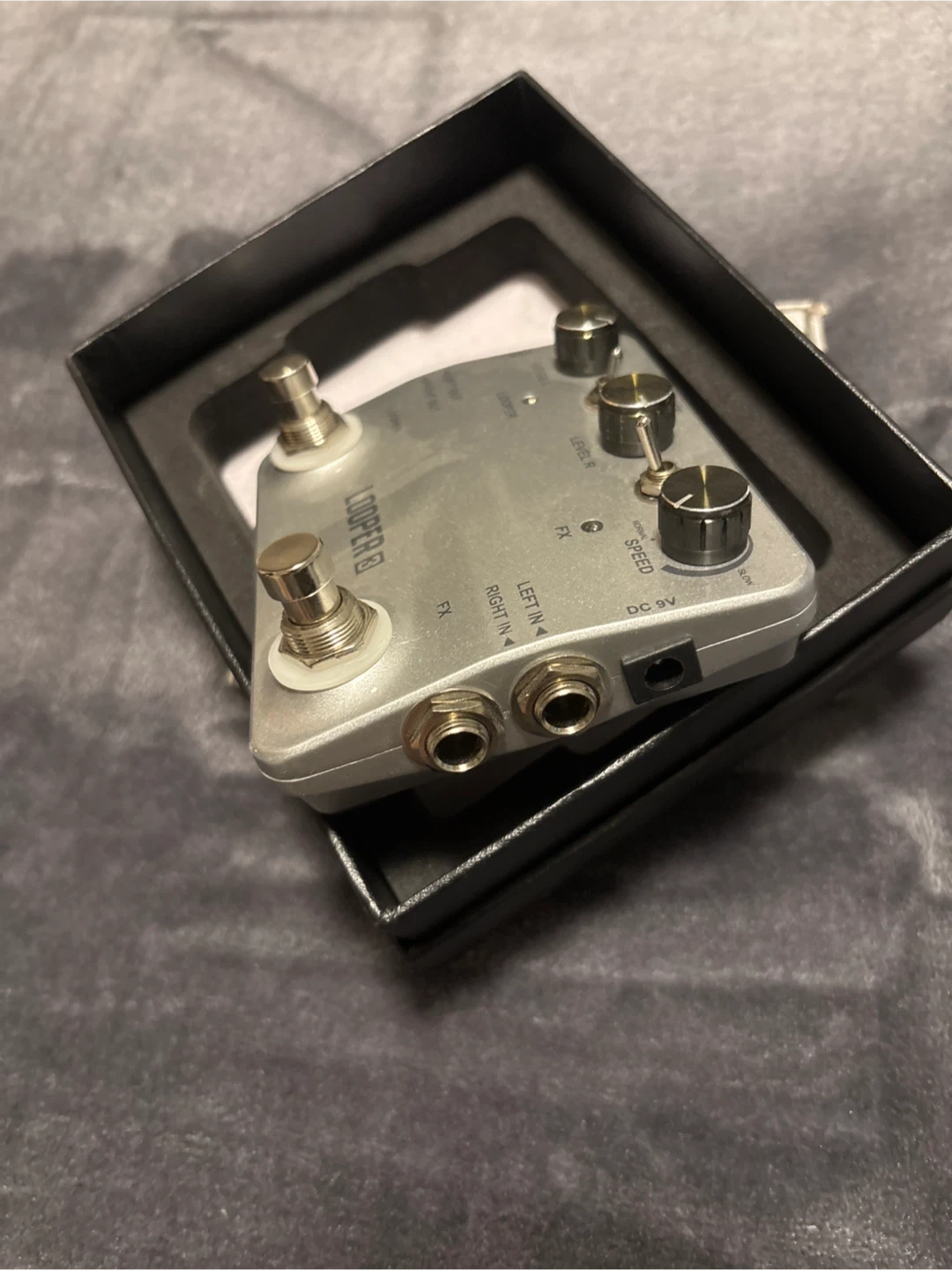 This Rowin looper 3 pedal is in good condition and comes with its original box. It's a versatile tool for guitarists looking to layer sounds. Includes USB power input.