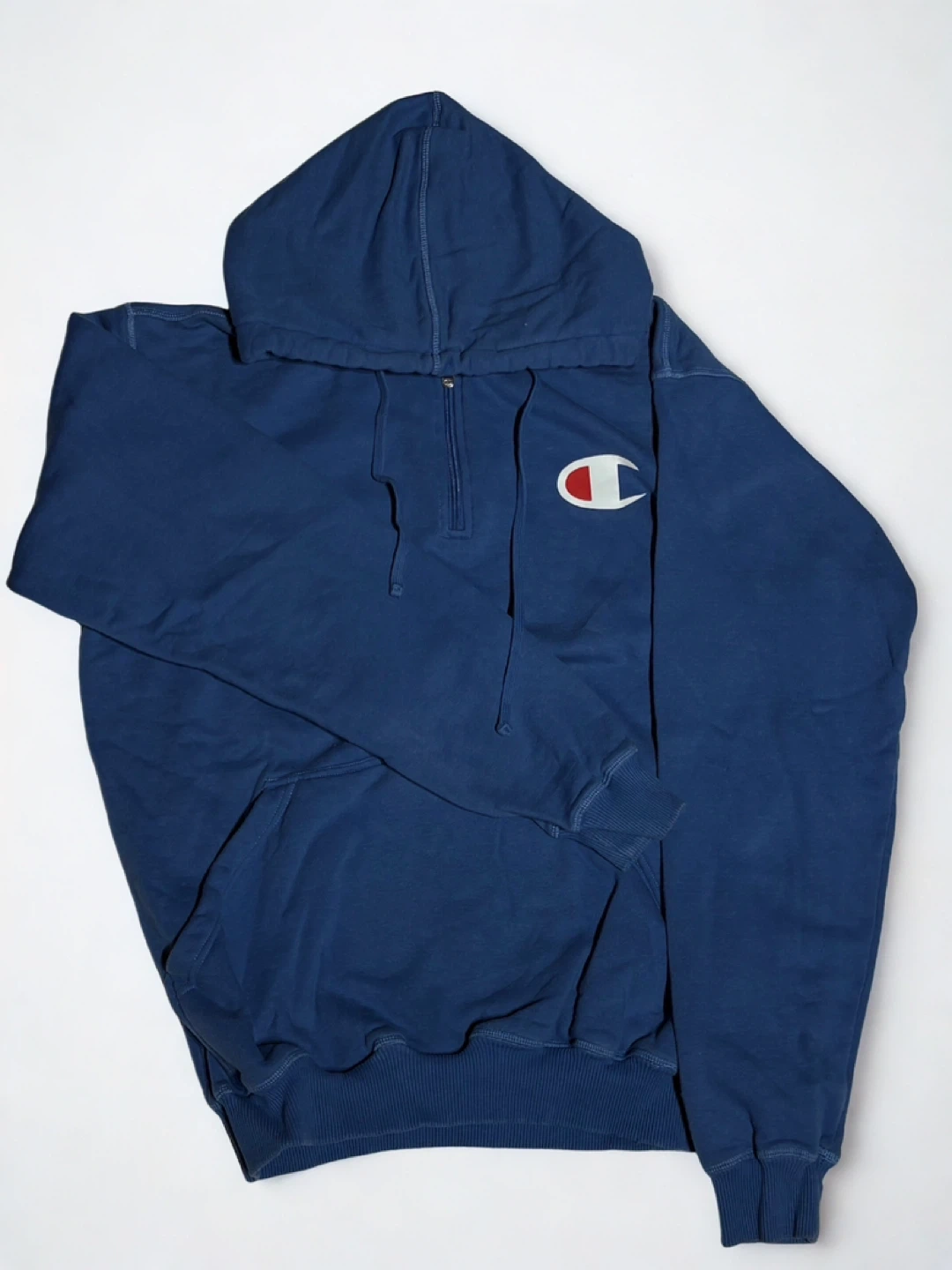15Selling a Champion Authentic Athleticwear hoodie in size LT (Large Tall) It's a nice blue colour. Please note there is some damage to the wrist cuff as pictured.