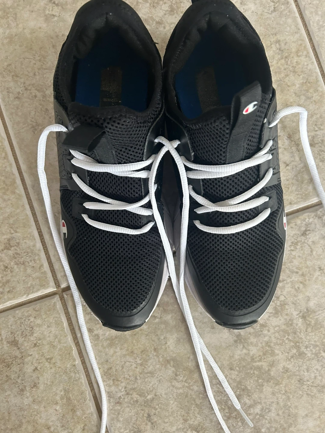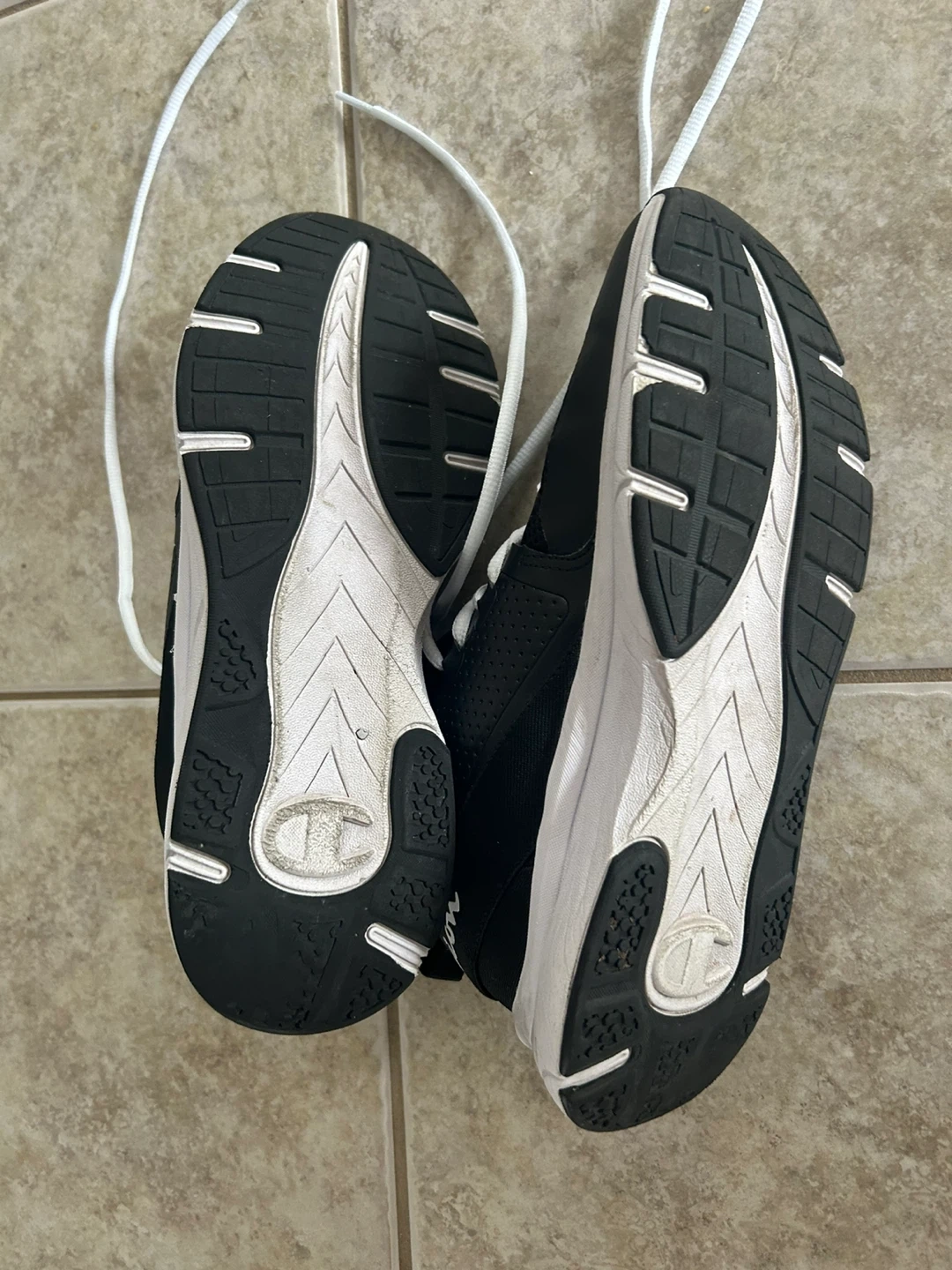 65Selling a pair of Champion sneakers in black. Used a handful of times. They're a size 10W (US). The upper material is textile and synthetic, with a rubber outsole. Great for everyday wear!