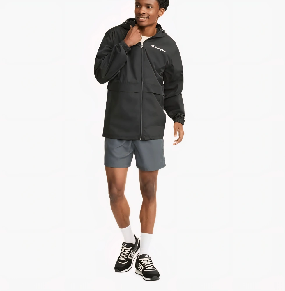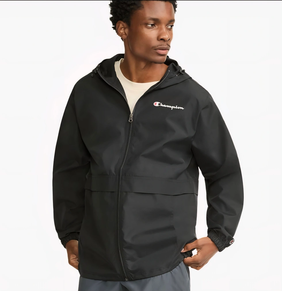 Selling a Champion windbreaker jacket in black. It's Brand New and perfect for those breezy days. The jacket features the Champion logo on the front. A stylish and practical addition to your wardrobe!