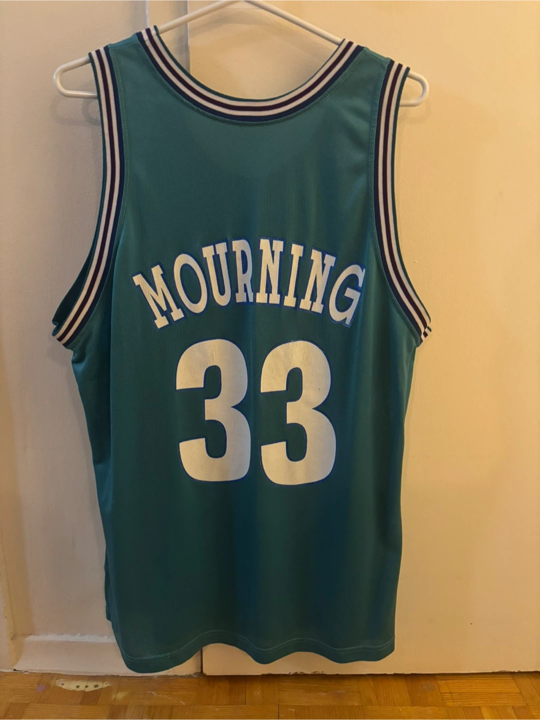 Champion Charlotte Hornets Alonzo Mourning jersey - size 44. It's in great shape and ready for a new home!
