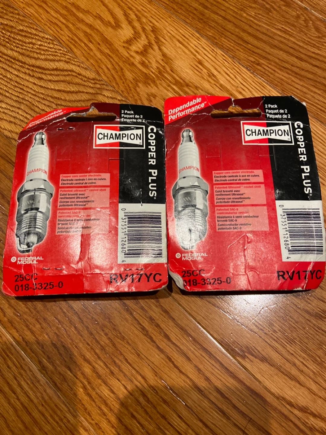 12Selling two packs of Champion Copper Plus spark plugs, model RV17YC. Each pack contains two spark plugs. These are designed for dependable performance and are a great choice for your vehicle's ignition system
