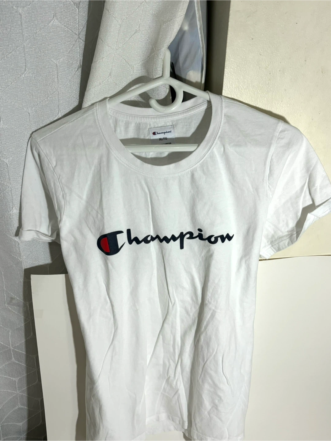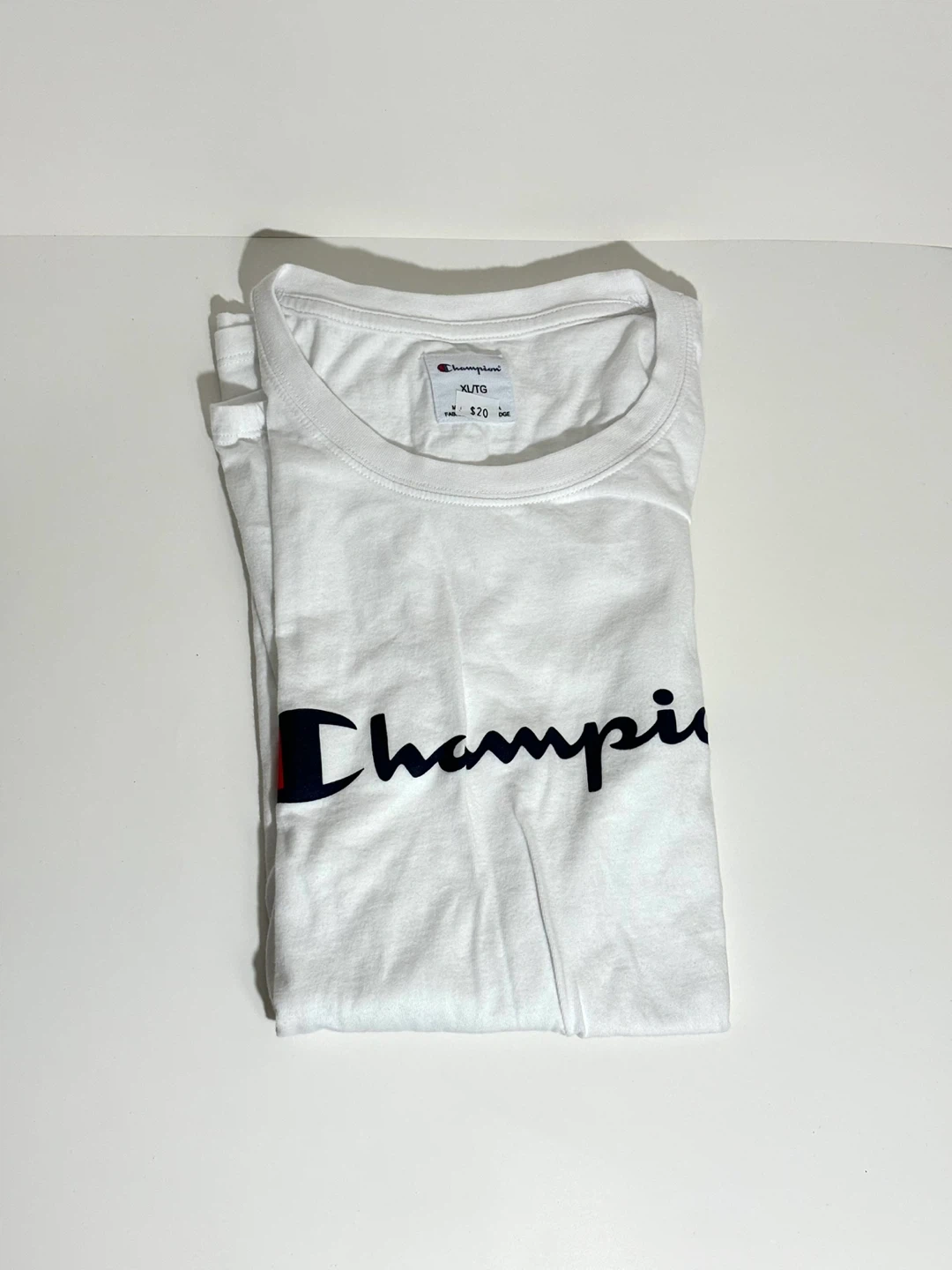 Selling a Champion white t-shirt in size XL/TG. Large fits well too. Message if interested!