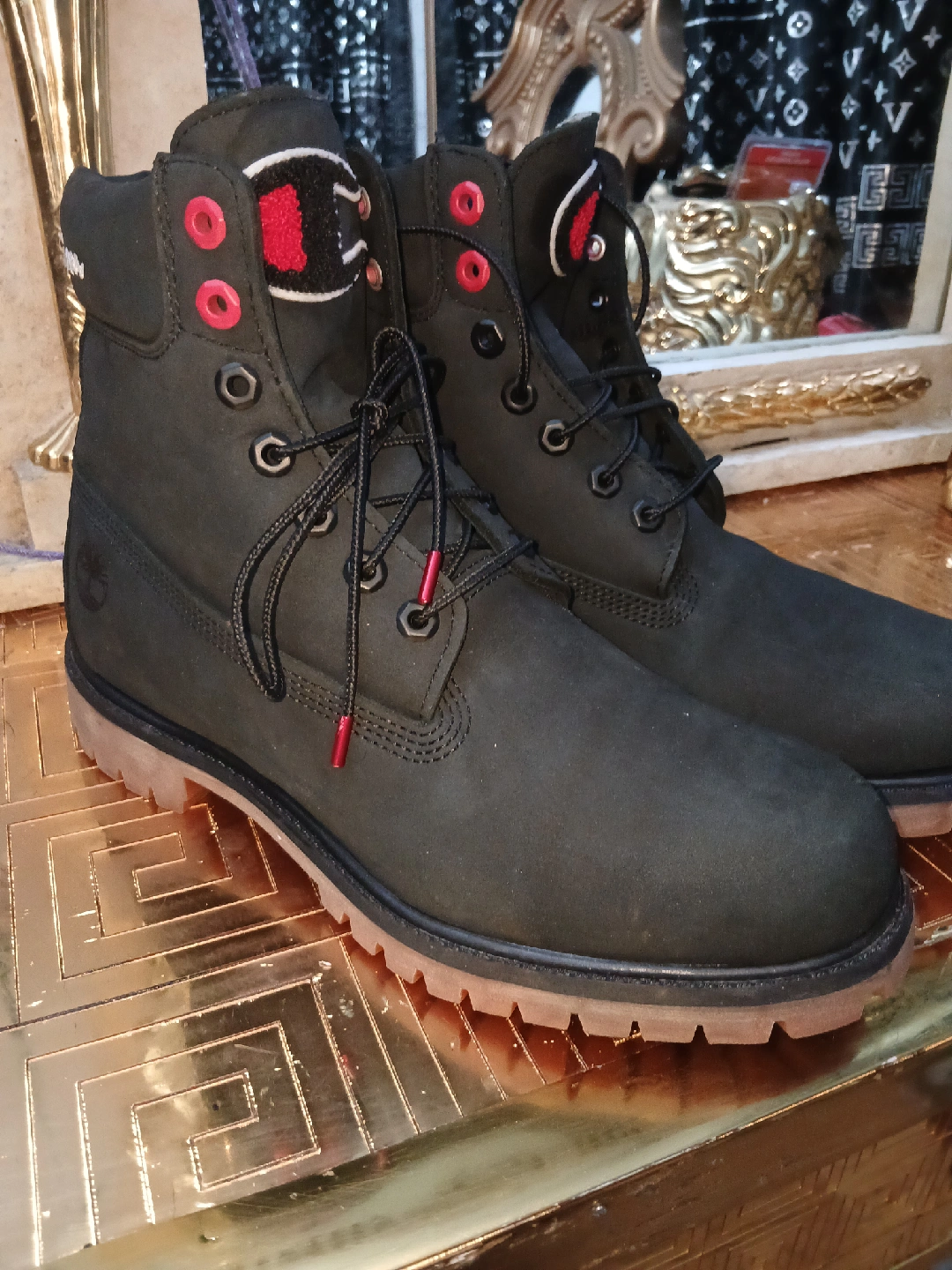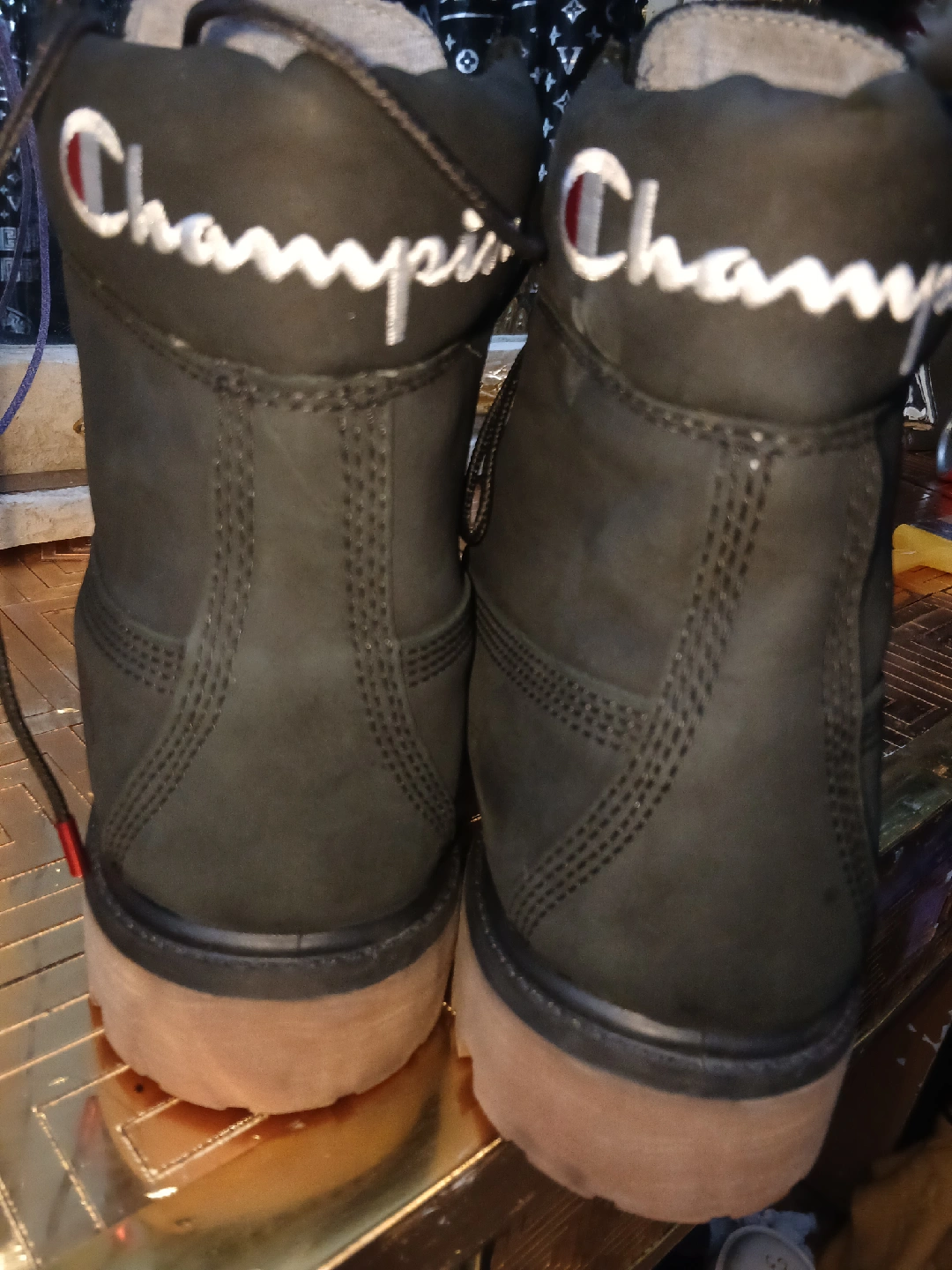 Selling a pair of Champion x Timberland boots in black! They're in great condition and ready for a new home. These stylish boots combine the classic Timberland durability with Champion's sporty flair, making them a unique addition to your footwear collection