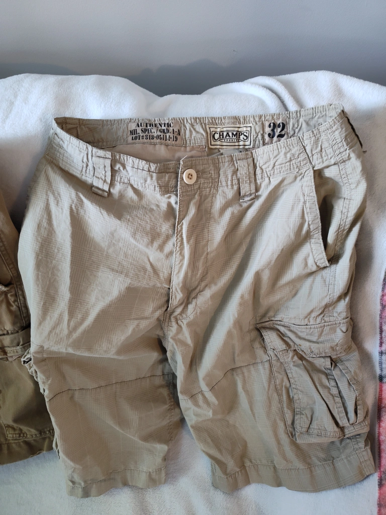 Selling a pair of Champs Sports cargo shorts in size 32! They're in great condition and perfect for casual wear. The shorts feature a comfortable fit and plenty of pocket space for your essentials