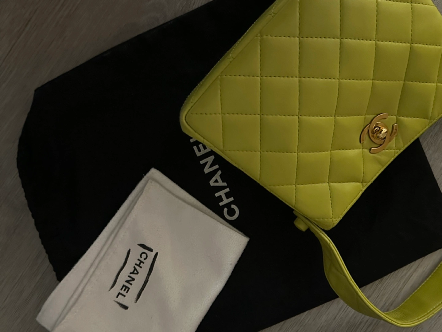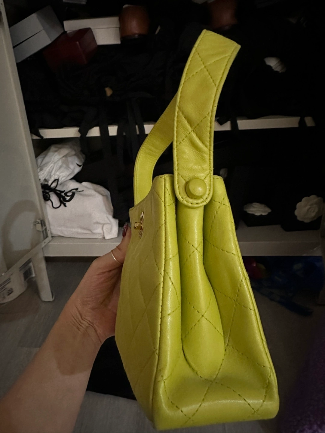 33Vintage CHANEL handbag. Lime green quilted leather. Gold-tone hardware. Top handle. Includes dust bag and cleaning cloth. I bought it in Amore Tokyo.