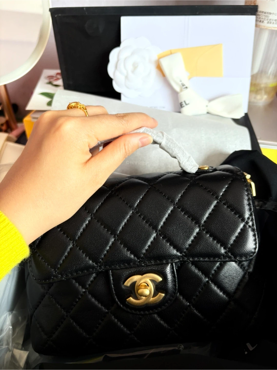 15Selling a beautiful Chanel black quilted leather top handle bag! It's in great condition.
