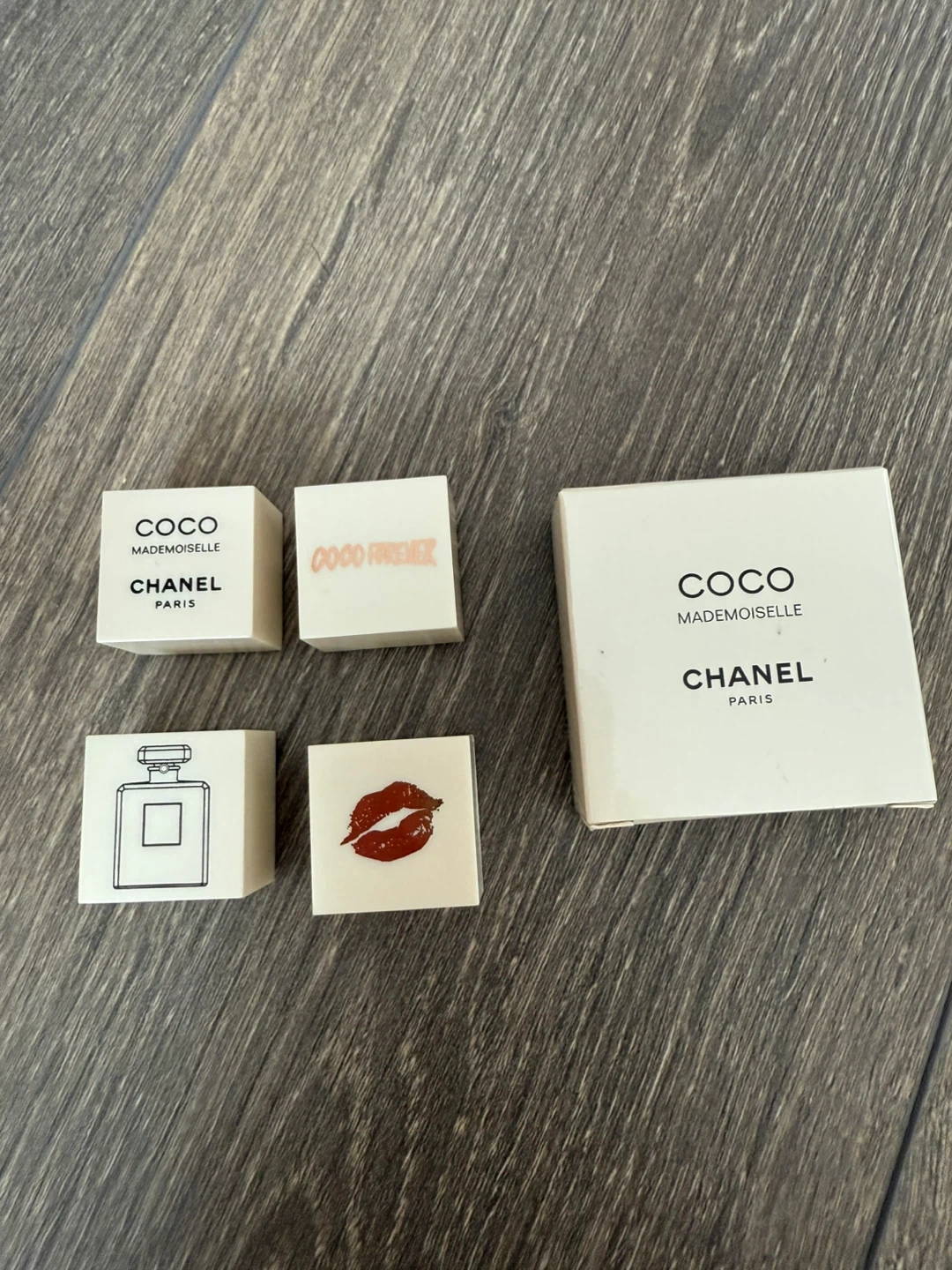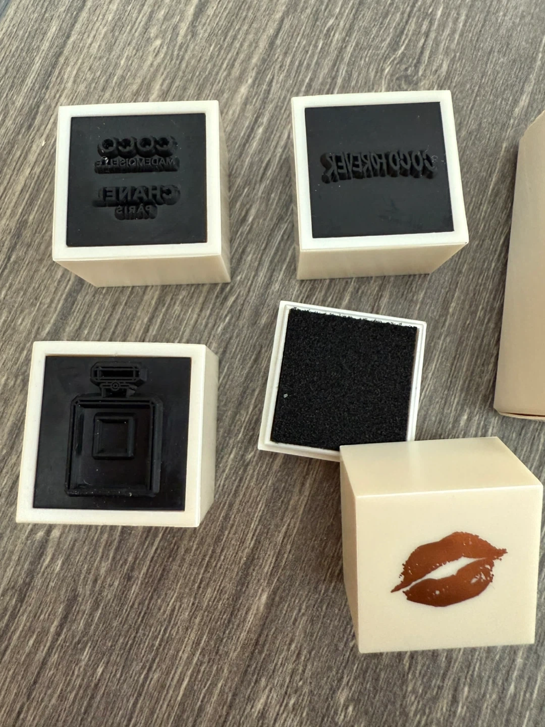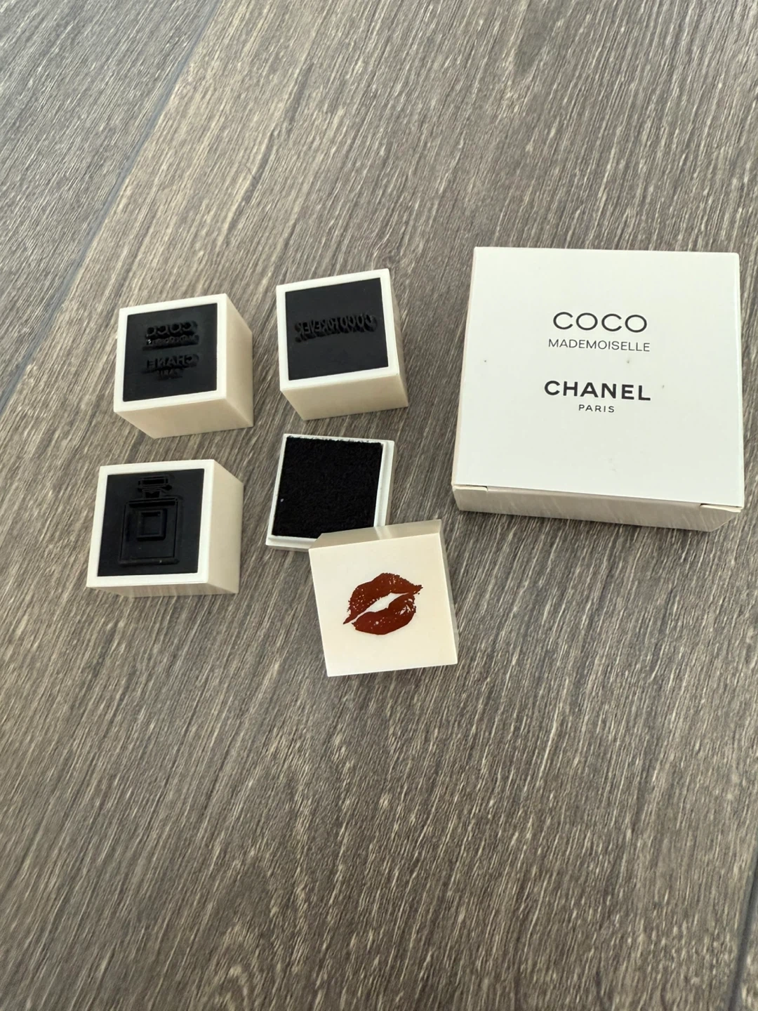 92Here's a cute Chanel Coco Mademoiselle stamp set! It includes multiple stamps with different designs. Perfect for adding a touch of luxury to your crafts or correspondence