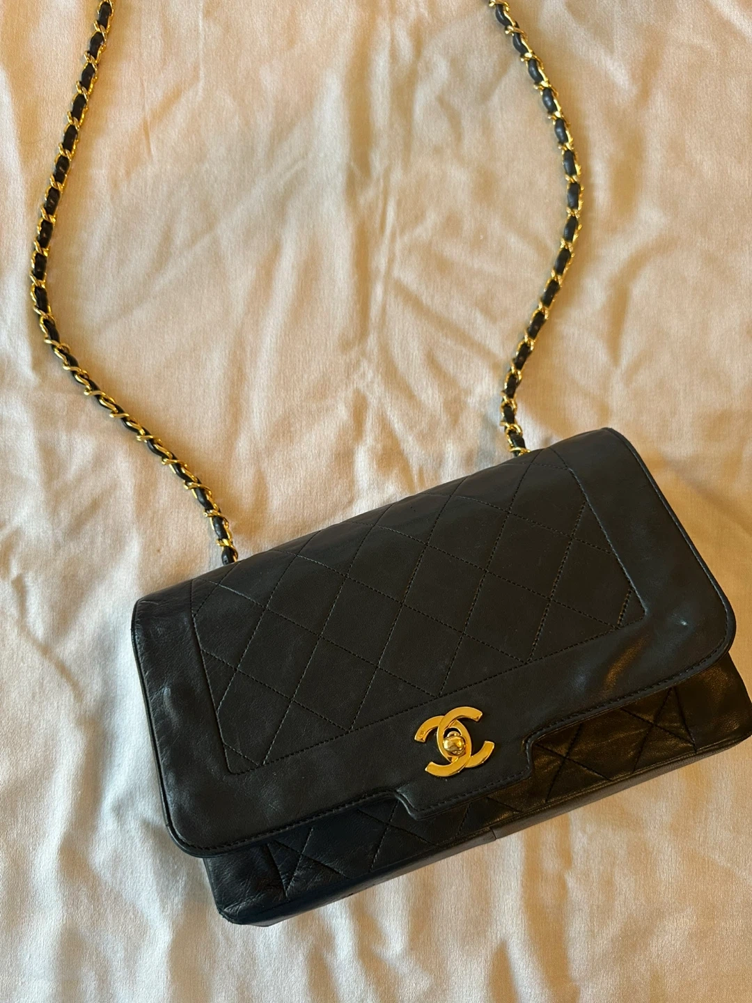 10Selling a classic Chanel shoulder bag in black leather. It has the iconic quilted design and gold-tone chain. It's a stylish and timeless piece! Make me an offer I can’t refuse. 1012585