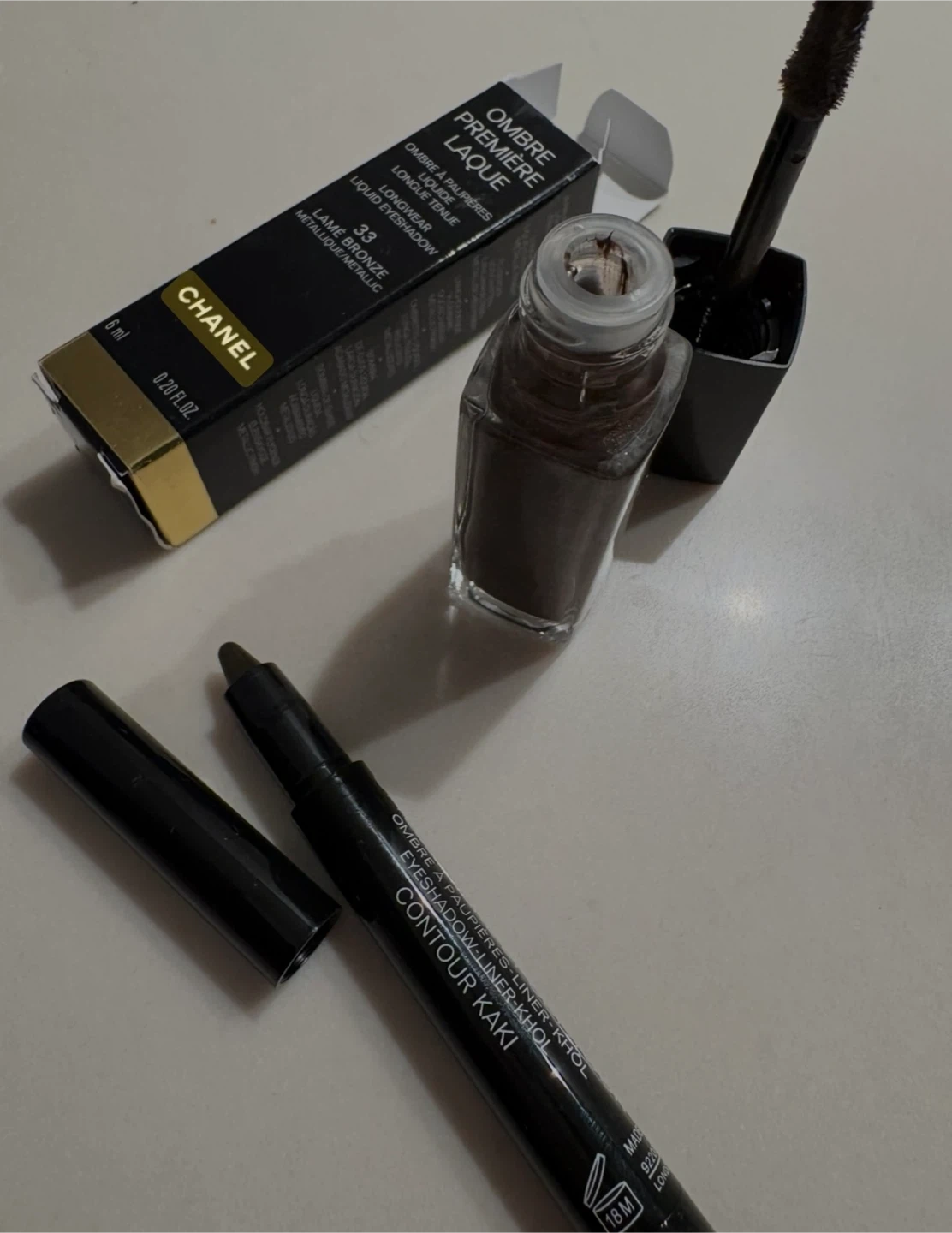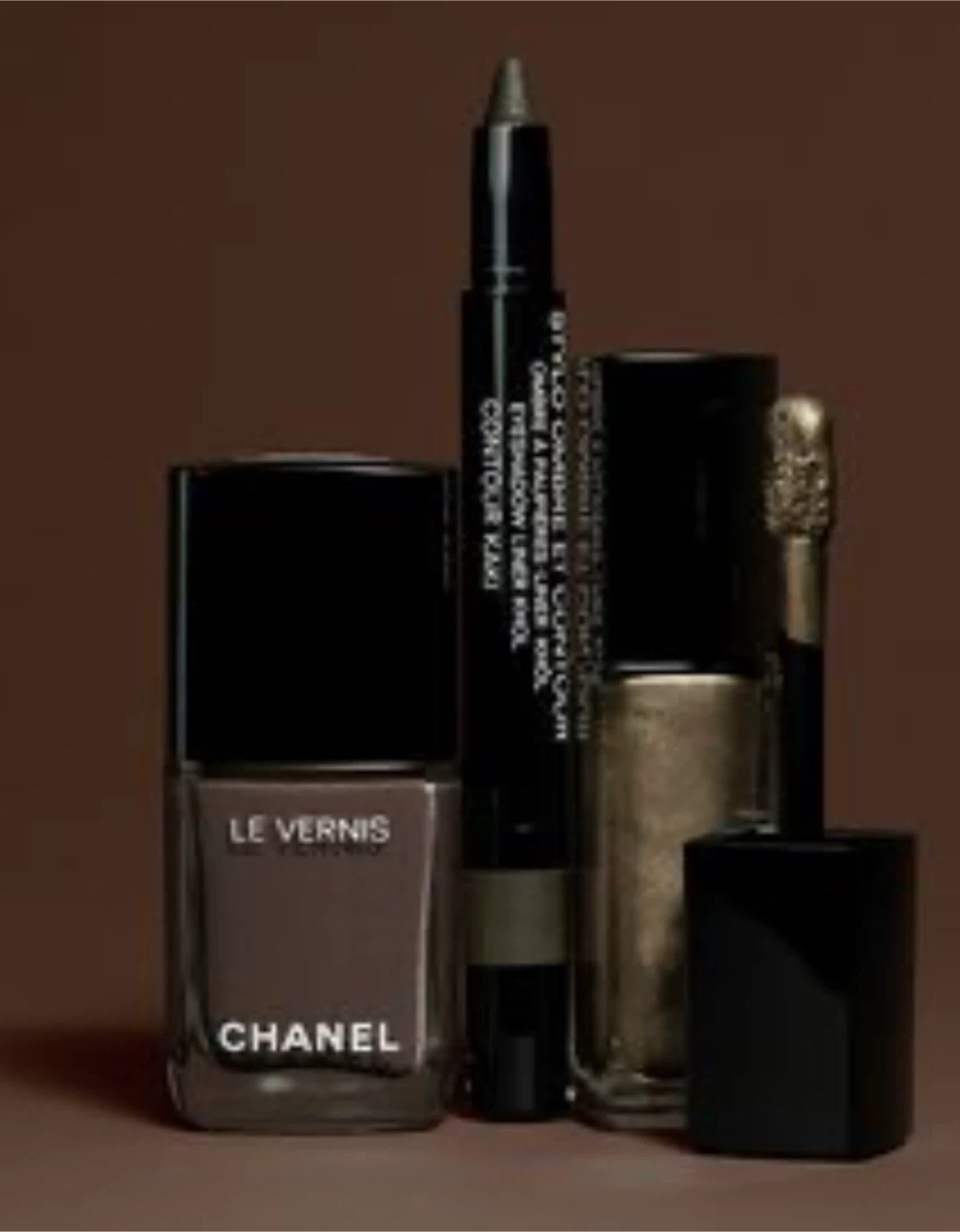 217Chanel Longwear Liquid Eyeshadow, Eyeliner Pencil and Nail Polish Set (3 items) from the Limited Edition Fall 2021 Campaign NEW NEVER USED 1. Longwear Liquid Eyeshadow/Ombré Premiere Laque - Lame Bronze $52 + HST original cost New in box 2. 3 in 1 Eyeshadow/Eyeliner/Khol Yeux Ombré et Contour - Khaki (Limited Edition Fall 2021) $52 + HST original cost New in box 3. Chanel Le Vernis Nail Polish 905 Brun Fume ($46 + HST original cost) New, no box