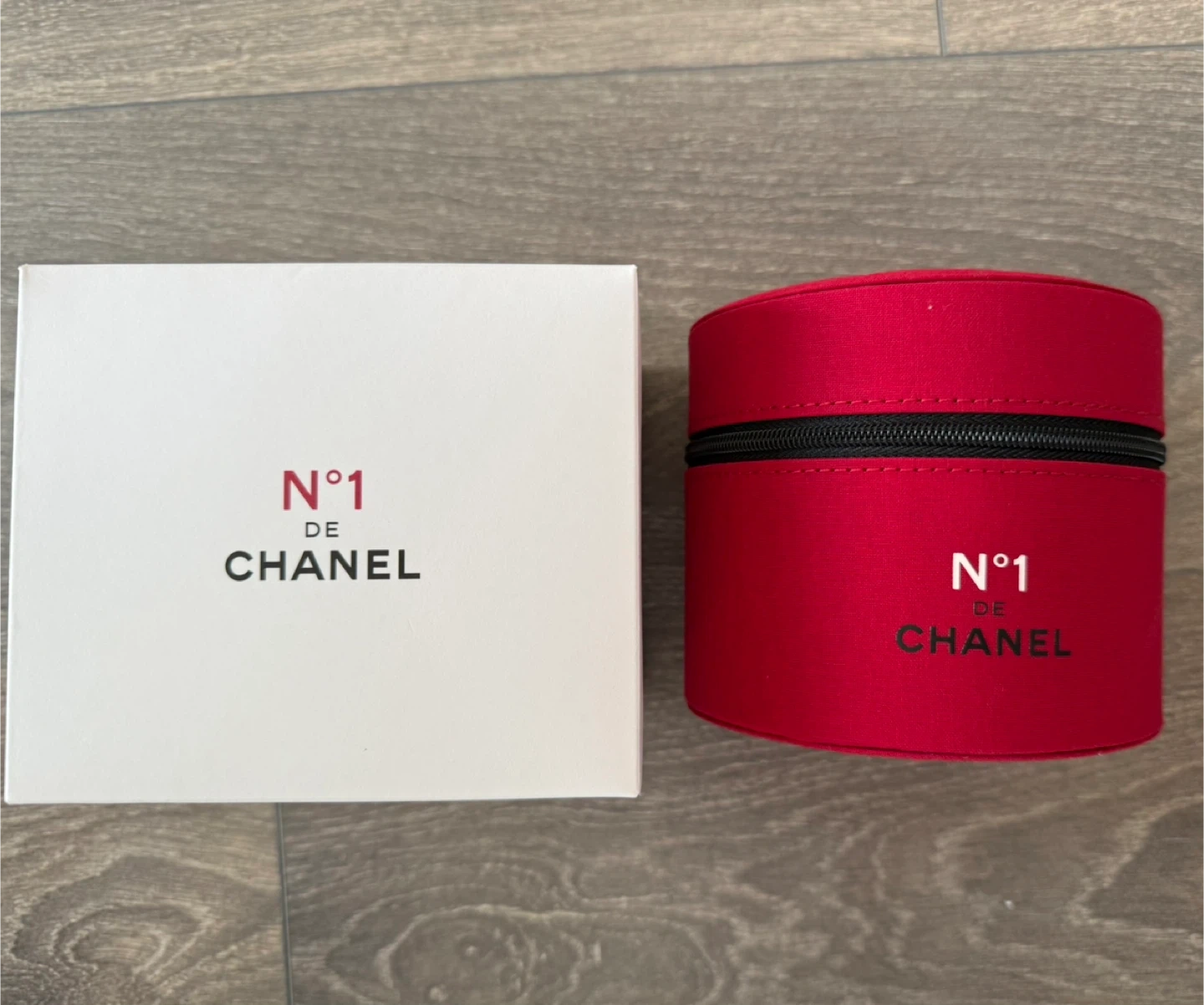 108Selling a red Chanel N°1 de Chanel case! It's in great condition and comes with its original box. The case is approximately 4 inches tall. Perfect for storing your makeup or skincare items