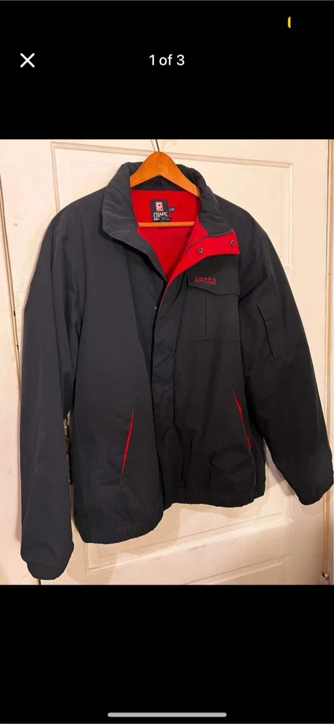 65Selling a Chaps jacket in size Large. It's black on the outside with a red lining. Perfect for cool weather!
