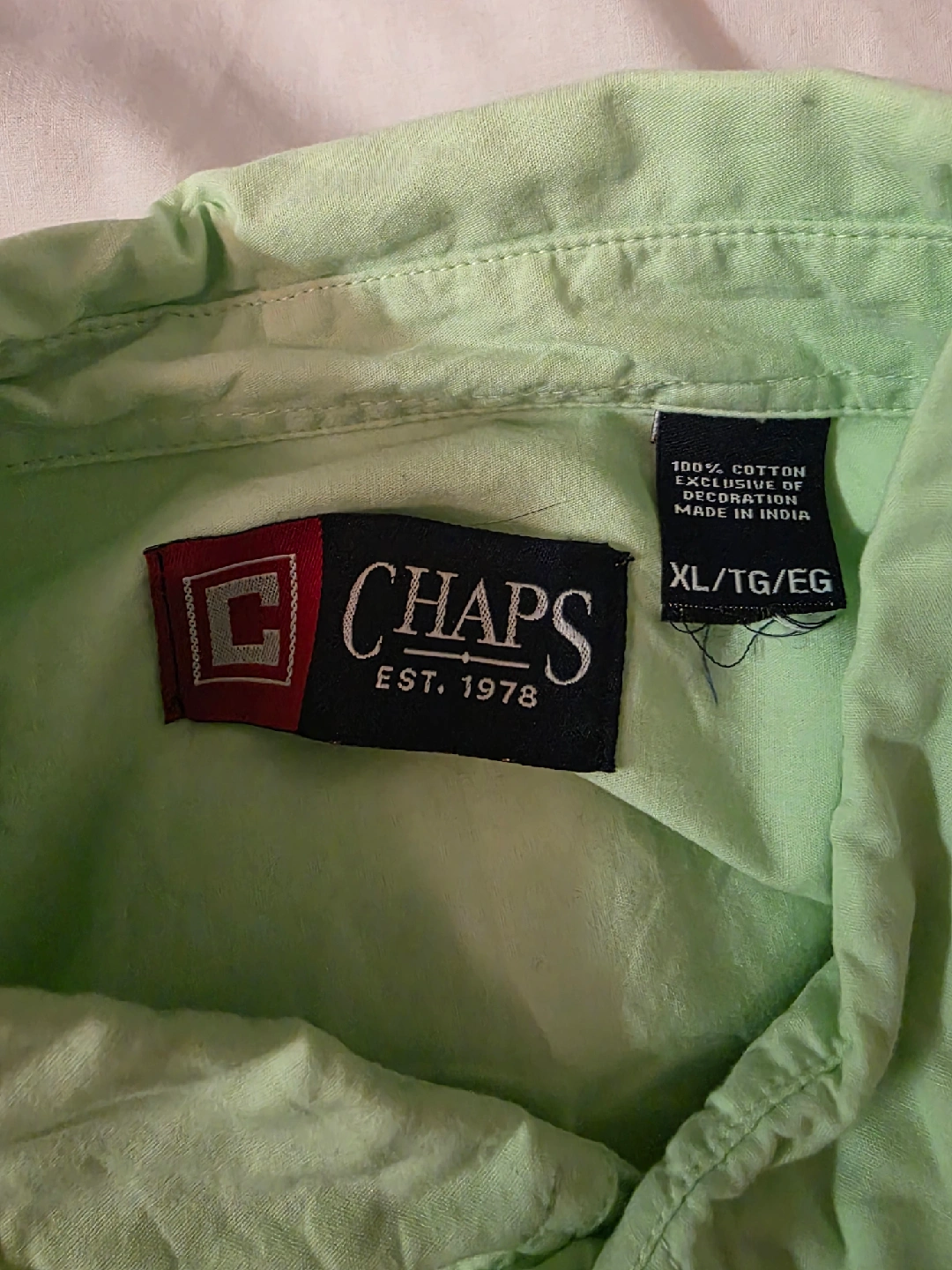 Light green Chaps button-up. 100% cotton. Like new.