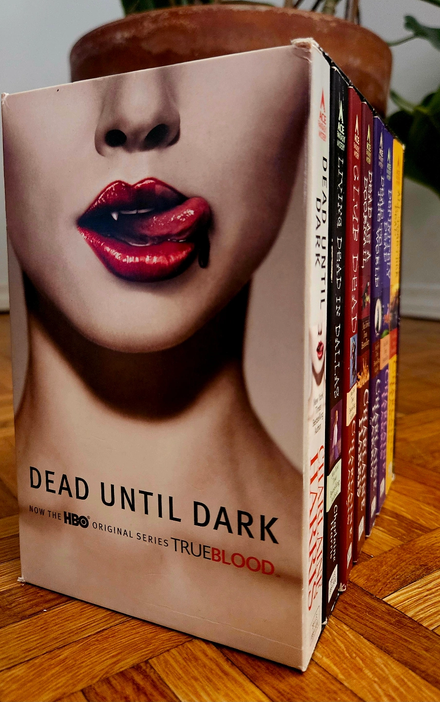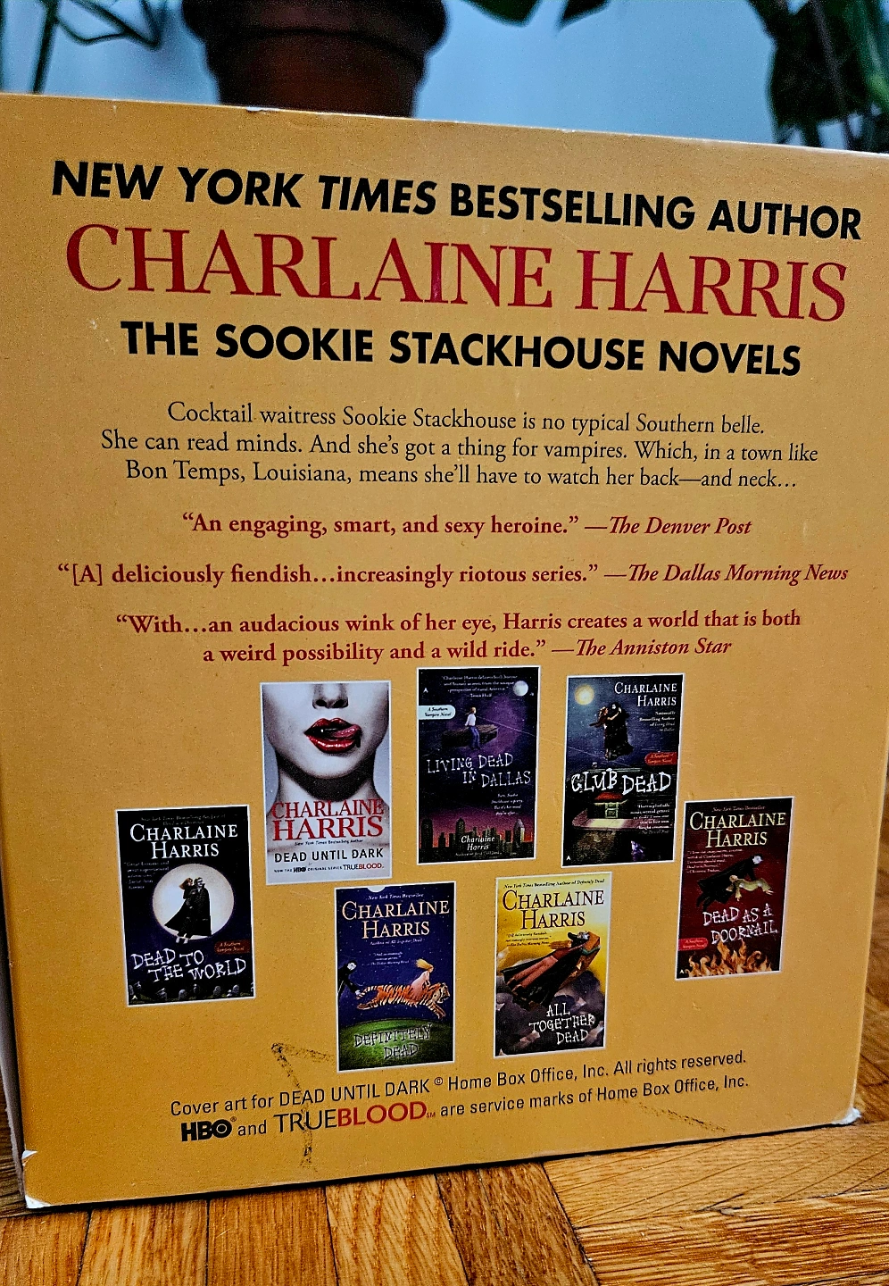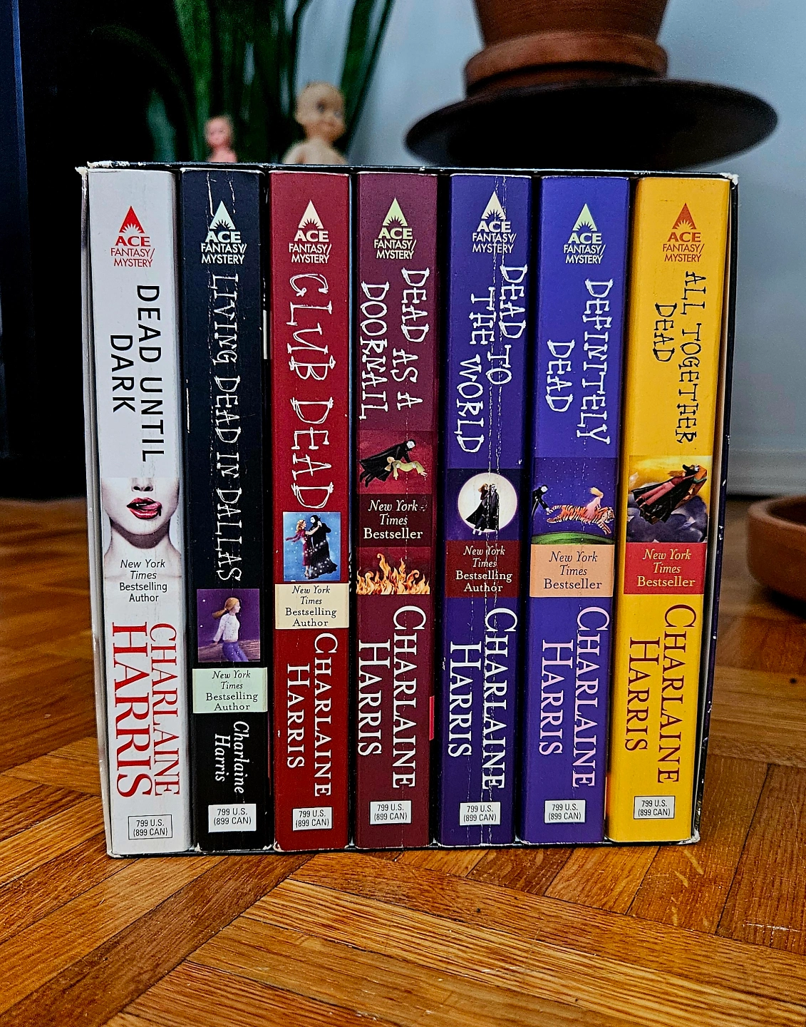 110Complete collection of seven Sookie Stackhouse novels by Charlaine Harris. Includes Dead Until Dark, Living Dead in Dallas, Club Dead, Dead to the World, Dead As a Doornail, Definitely Dead and All Together Dead. Ace Fantasy/Mystery paperback books. New York Times bestsellers. HBO True Blood series tie-in.