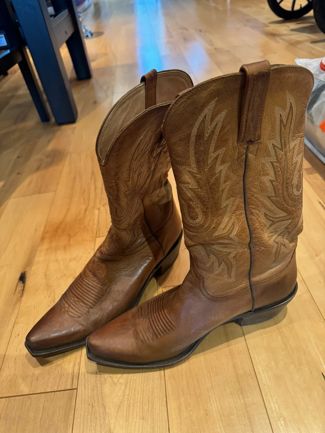 29Selling a pair of Charlie 1 Horse cowboy boots, handcrafted in Brazil! They're a size 10D and have a beautiful artisan design. These boots are in good condition and ready for a new home!