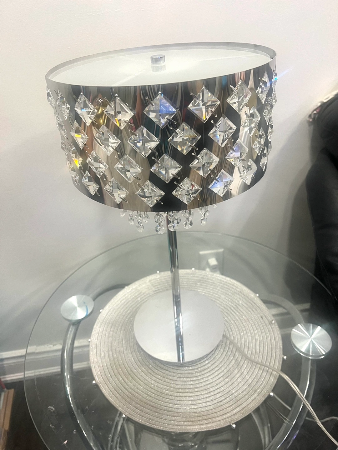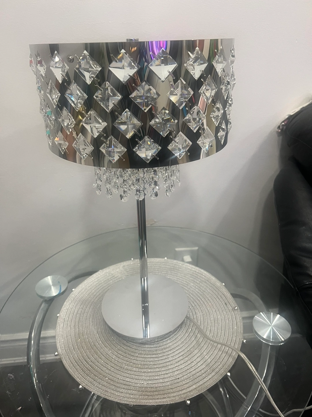 Selling a beautiful crystal table lamp! It has a silver finish and would add a touch of glamour to any room