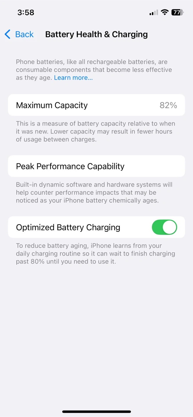 133iPhone 12 Pro. The maximum battery capacity is 82%. Small crack at the black glass. Cash only.
