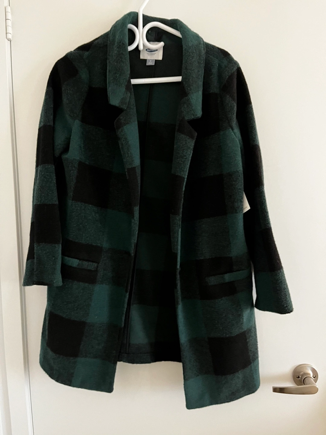 15Selling a stylish Old Navy plaid coat in size medium. It's a great addition to any wardrobe for a cozy and fashionable fall look. The coat features a classic plaid pattern in green and black. It was originally bought for $69.94